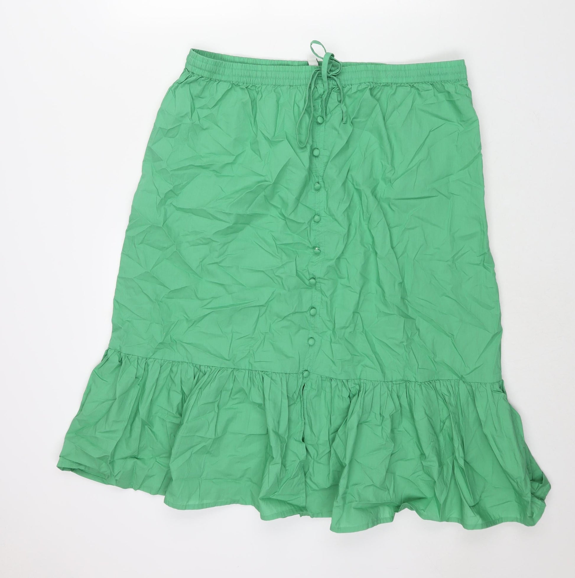Marks and Spencer Womens Green Cotton A-Line Skirt Size 18 Drawstring - Frill Button Detail