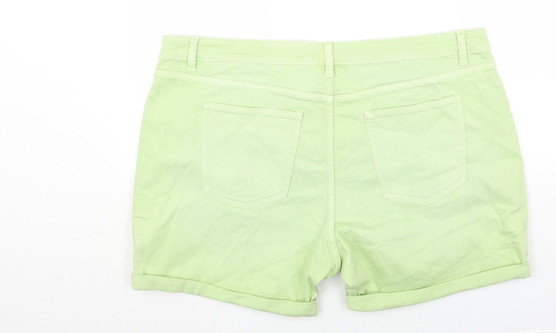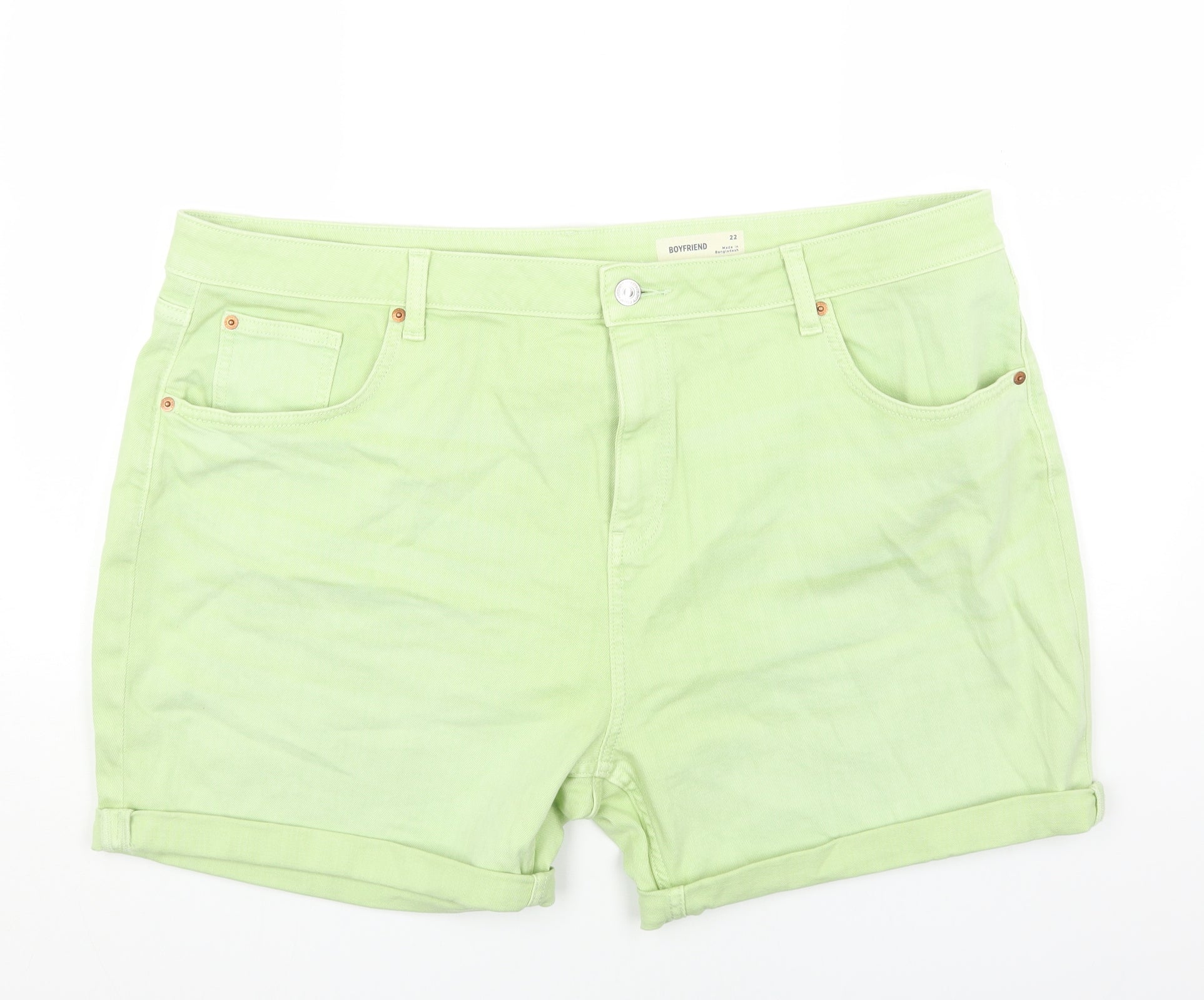 Marks and Spencer Womens Green Cotton Boyfriend Shorts Size 22 Regular Button