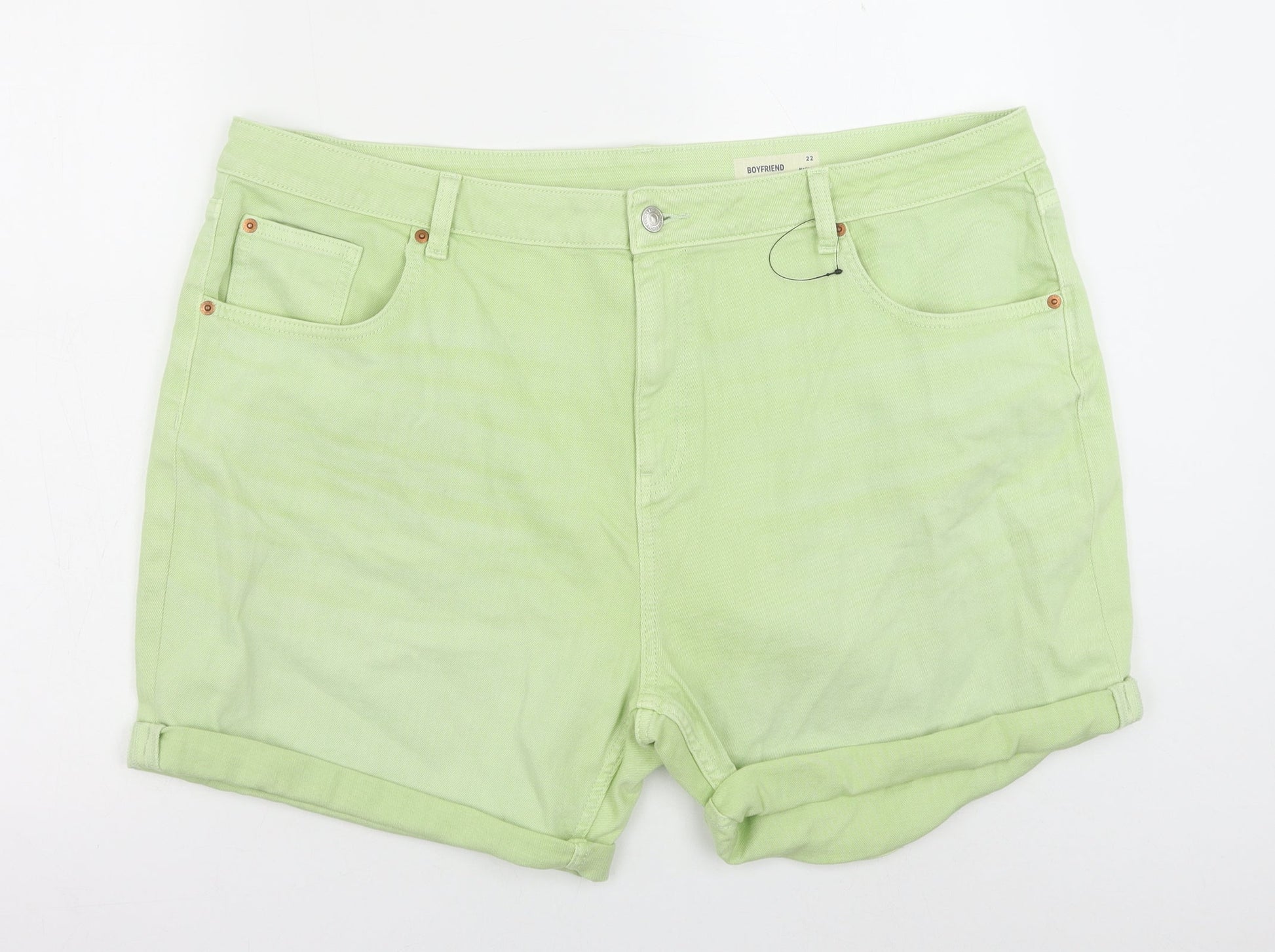 Marks and Spencer Womens Green Cotton Boyfriend Shorts Size 22 Regular Button