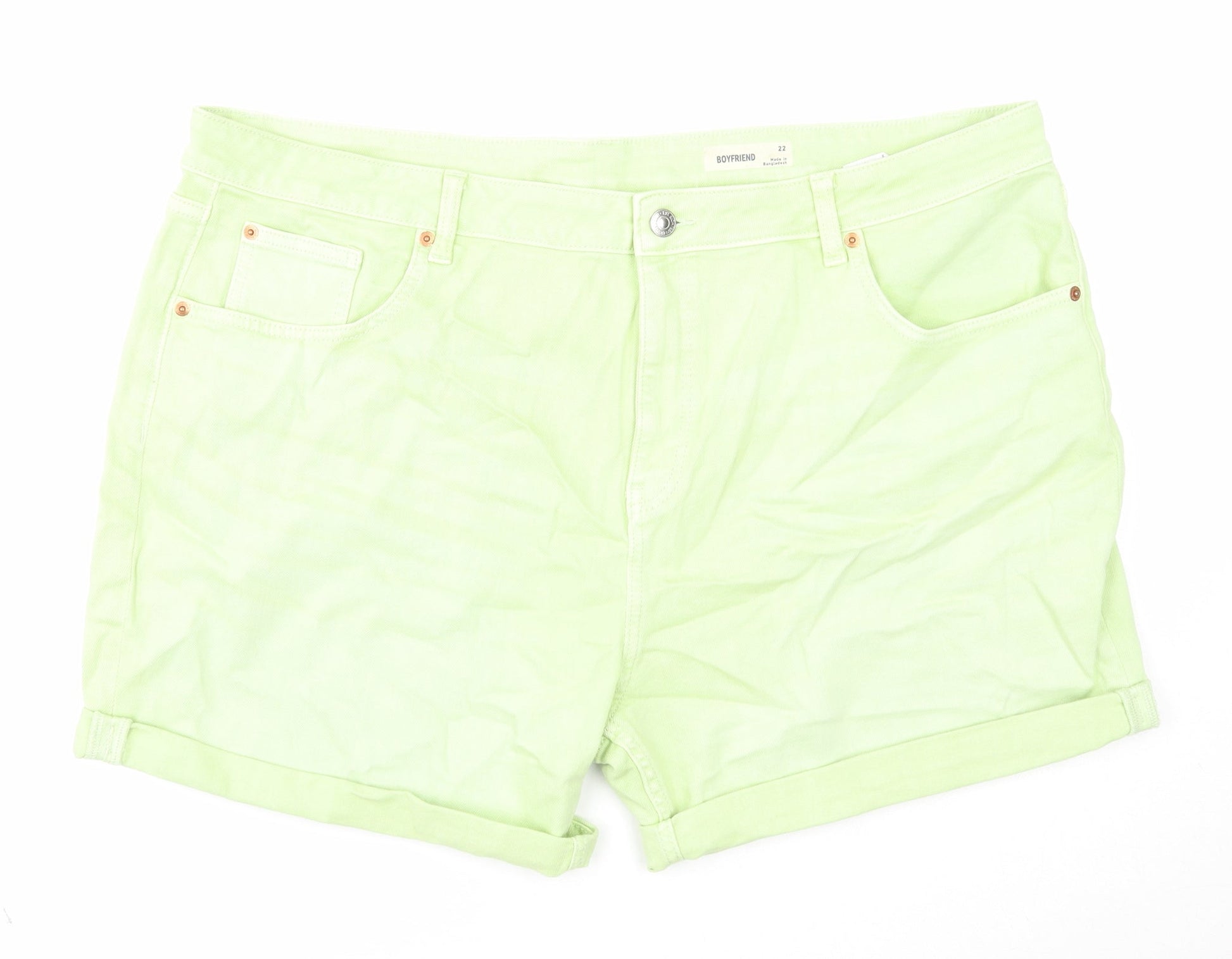 Marks and Spencer Womens Green Cotton Boyfriend Shorts Size 22 Regular Zip