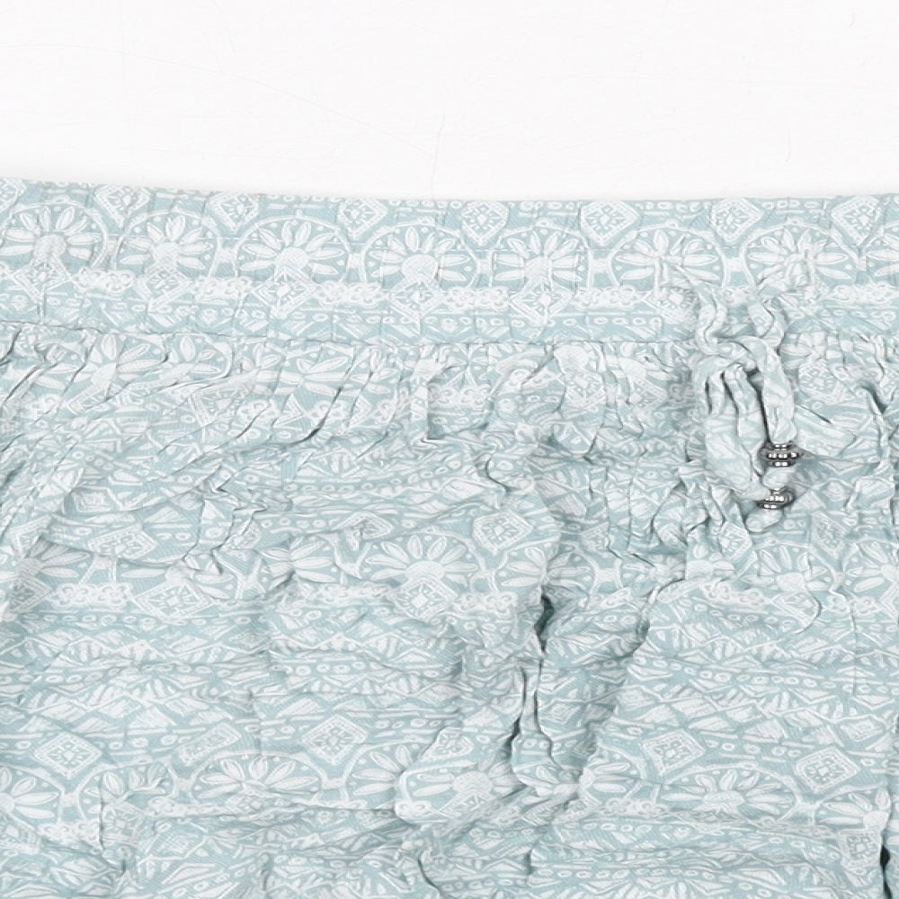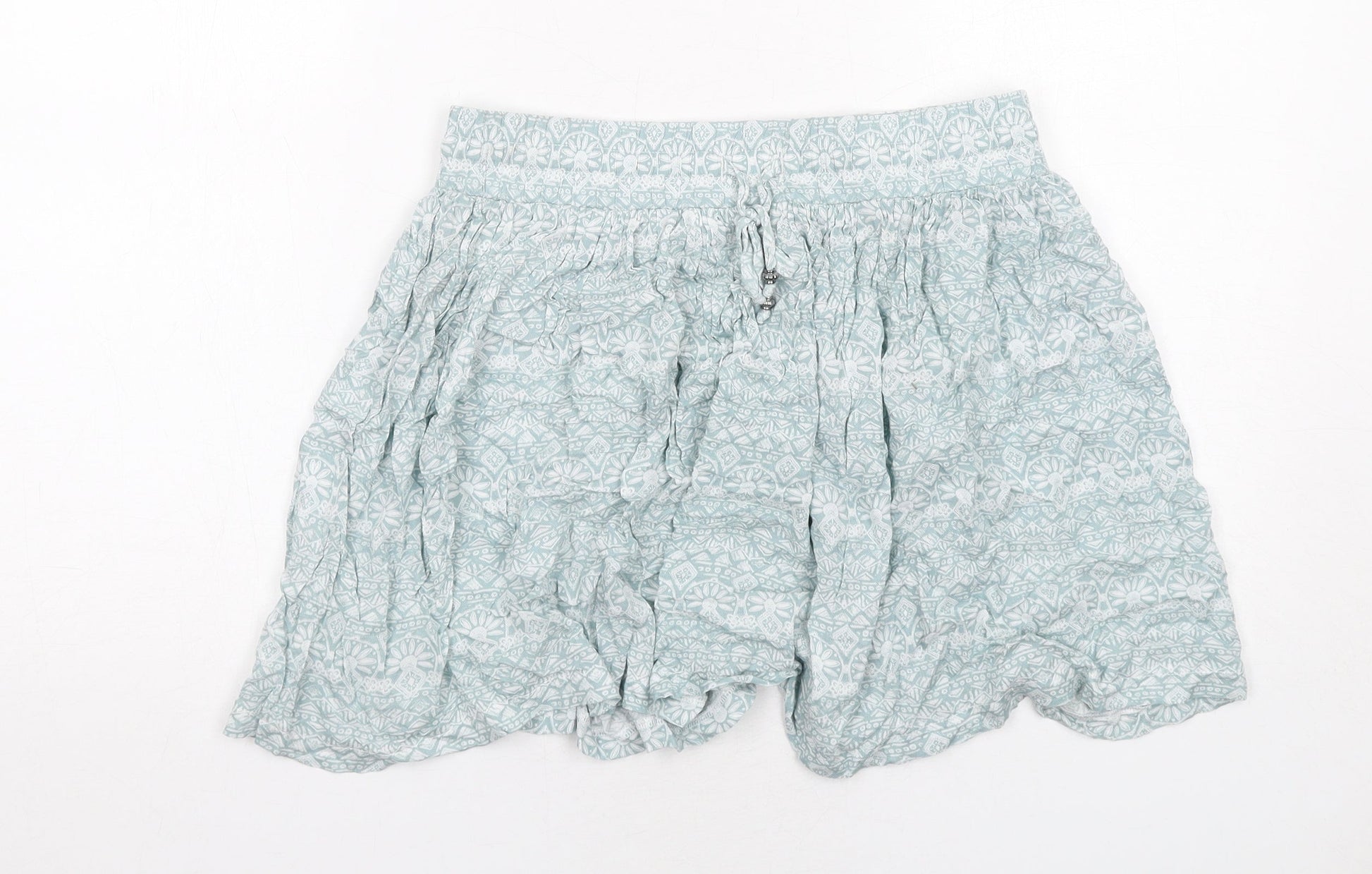 Marks and Spencer Womens Green Geometric Viscose Skater Skirt Size 10 Drawstring