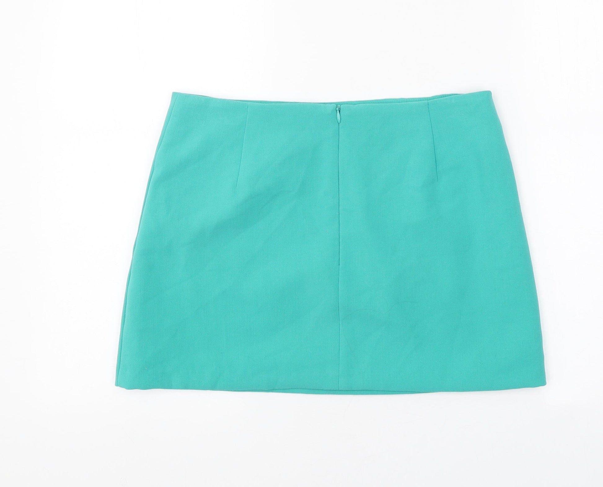 Marks and Spencer Womens Green Polyester Mini Skirt Size 8 Zip