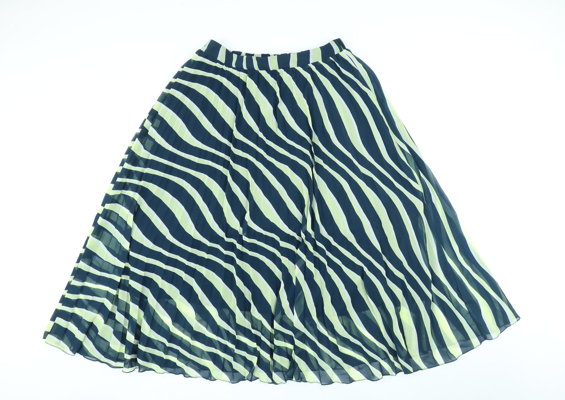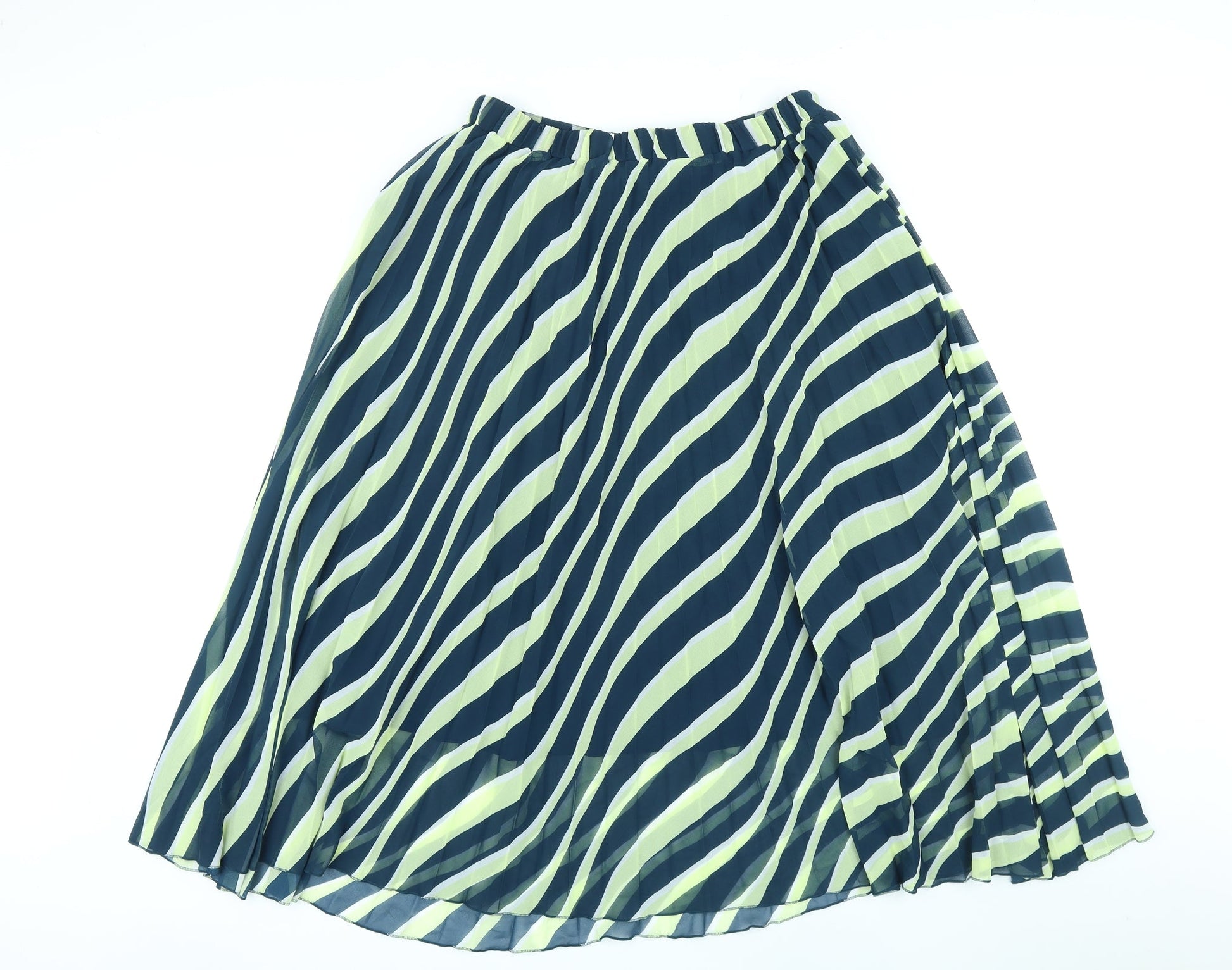Marks and Spencer Womens Green Striped Polyester A-Line Skirt Size 12