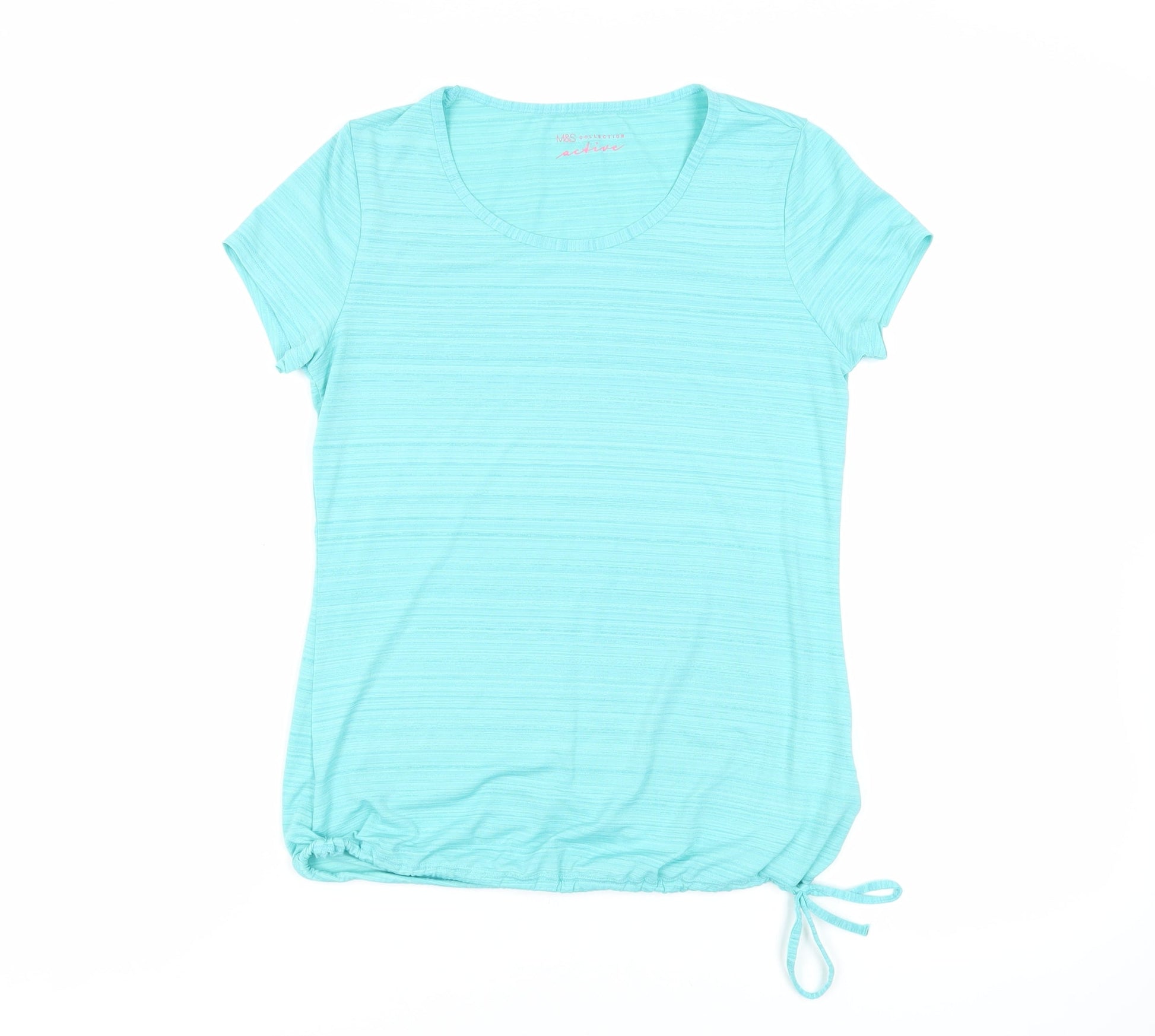 Marks and Spencer Womens Green Striped Polyester Basic T-Shirt Size 8 Round Neck - Gym Workout Running