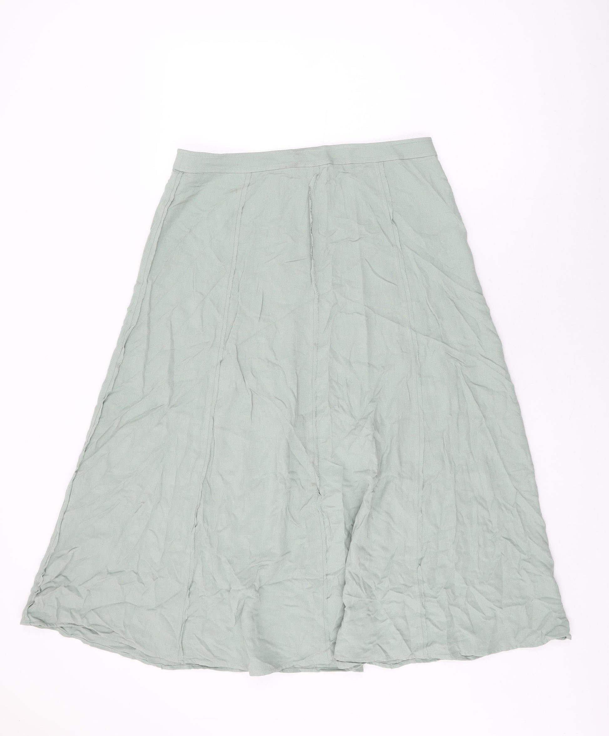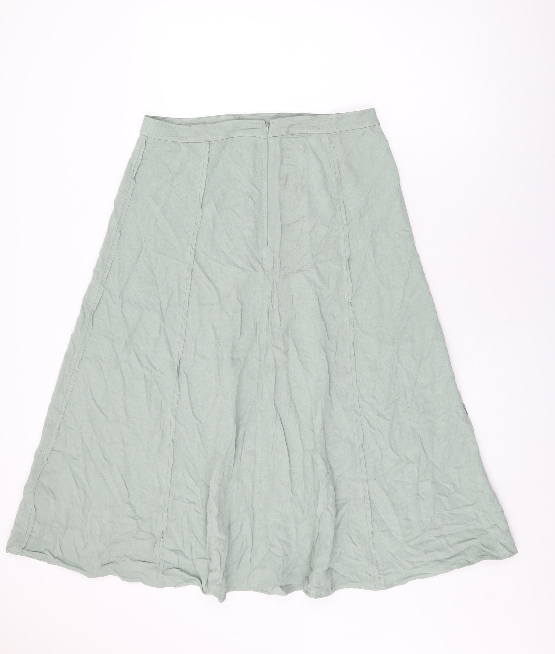 Marks and Spencer Womens Green Viscose Swing Skirt Size 12 Zip