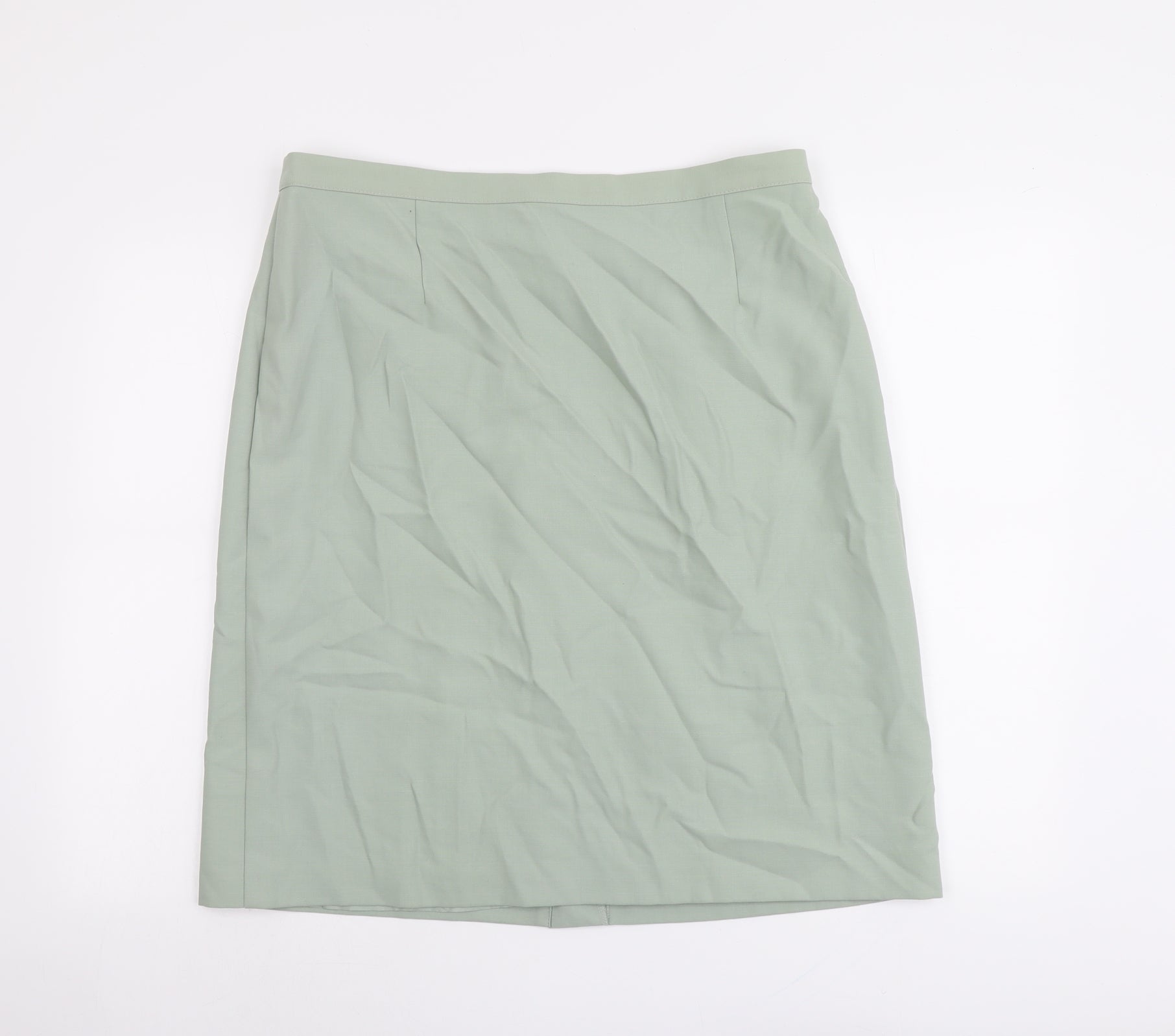 Marks and Spencer Womens Green Wool A-Line Skirt Size 20 Zip