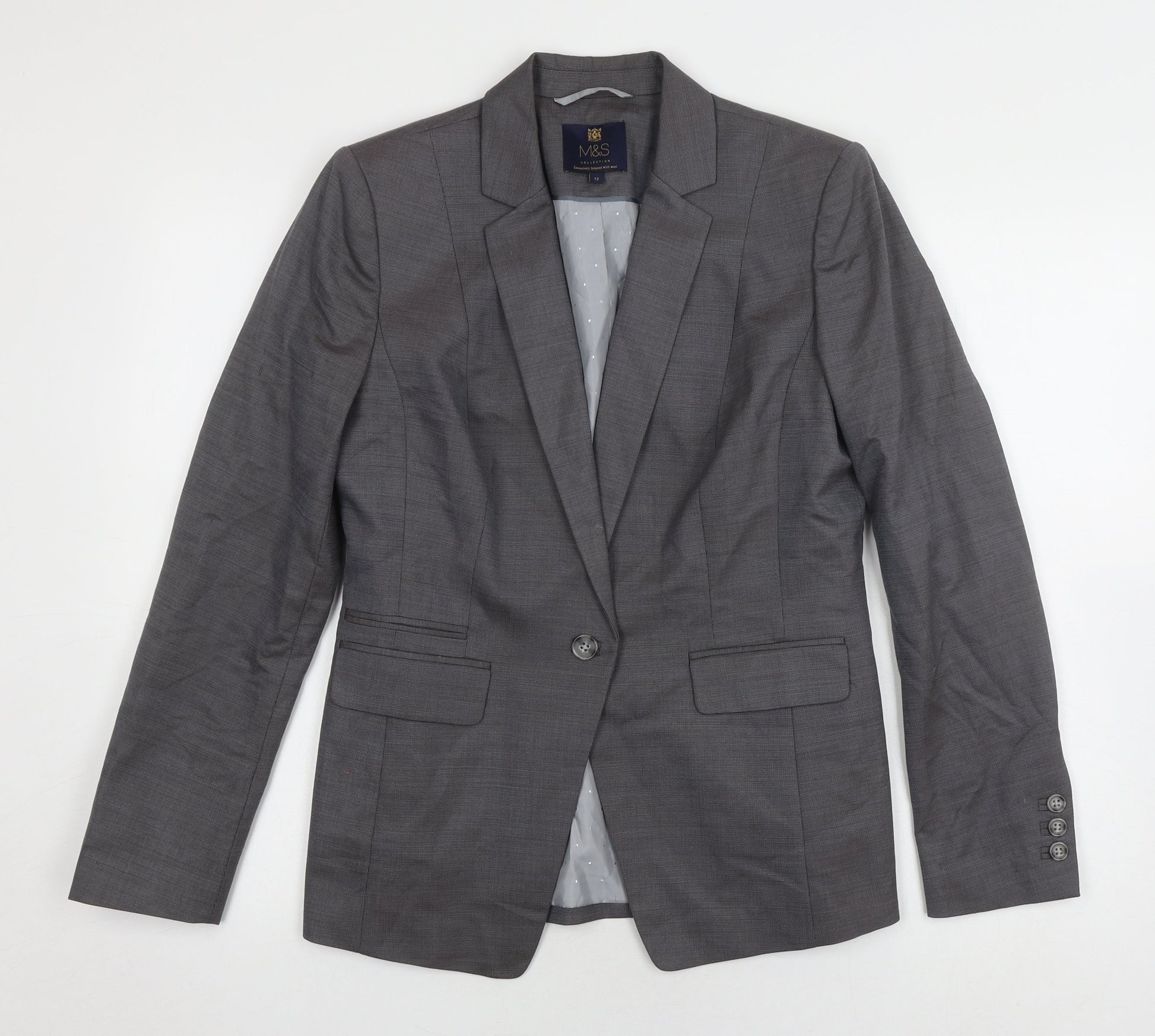 Marks and Spencer Women's Grey Blazer, Size 12