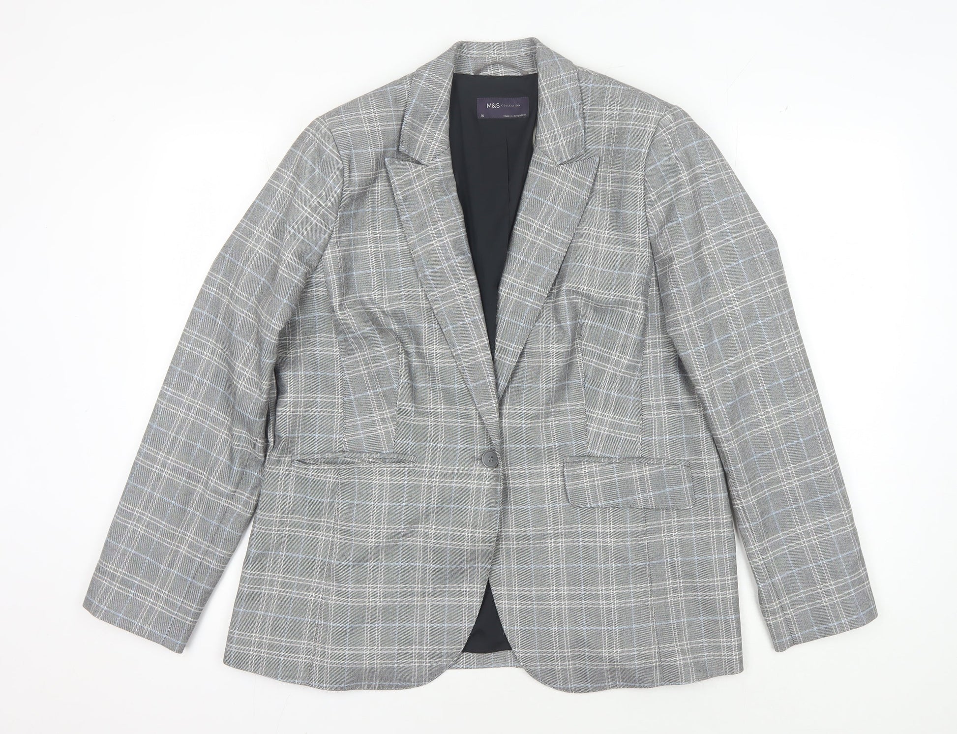 Marks and Spencer Women's Grey Check Blazer, Size 16