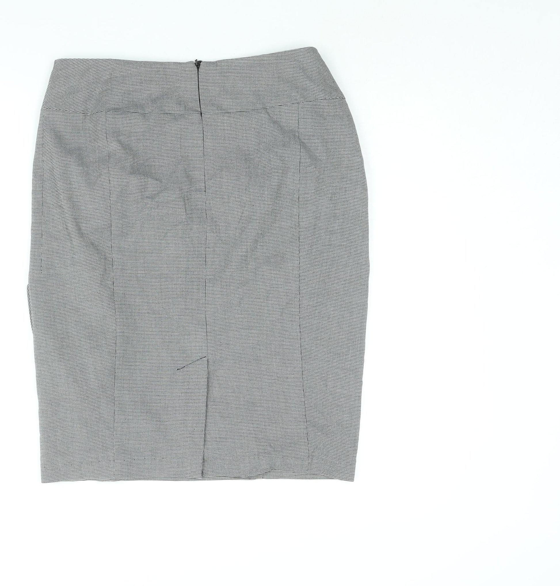 Marks and Spencer Womens Grey Check Polyester Straight & Pencil Skirt Size 14 Zip - Waterfall Frill Houndstooth