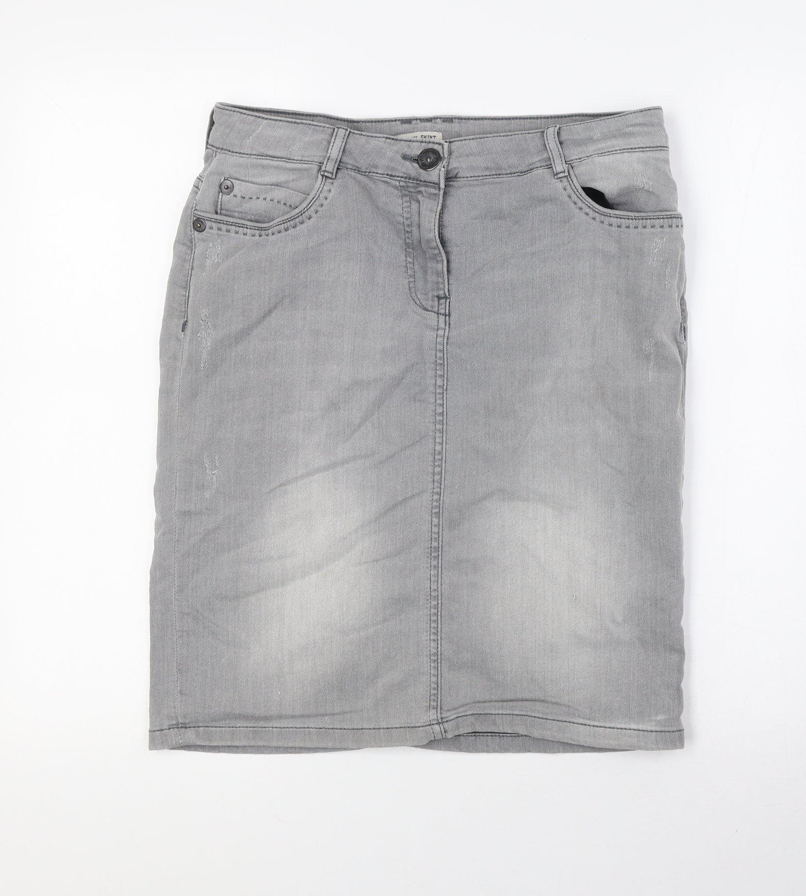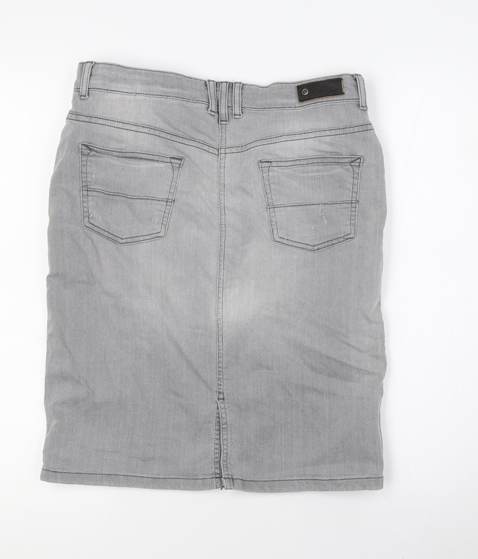Marks and Spencer Womens Grey Cotton Straight & Pencil Skirt Size 10 Button - Destressed