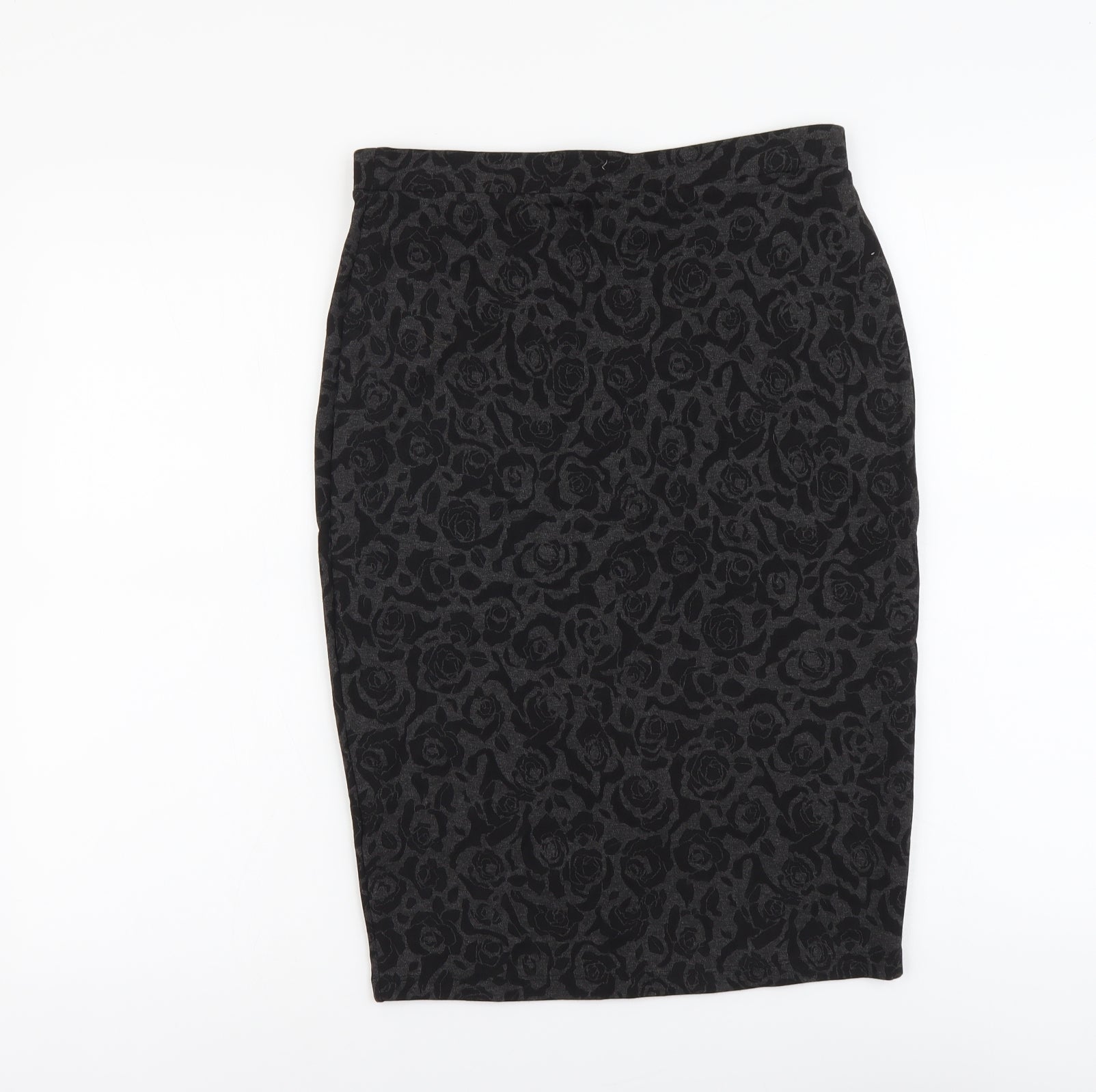 Marks and Spencer Womens Grey Floral Viscose Straight & Pencil Skirt Size 10
