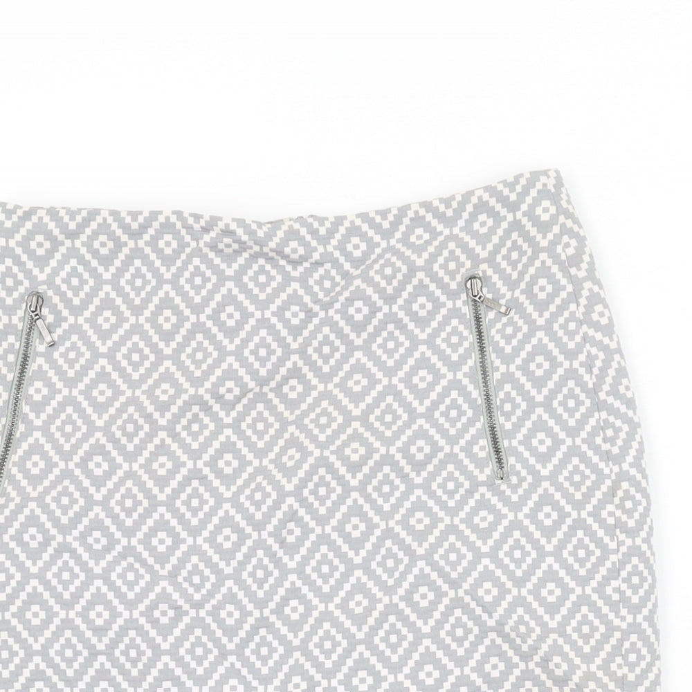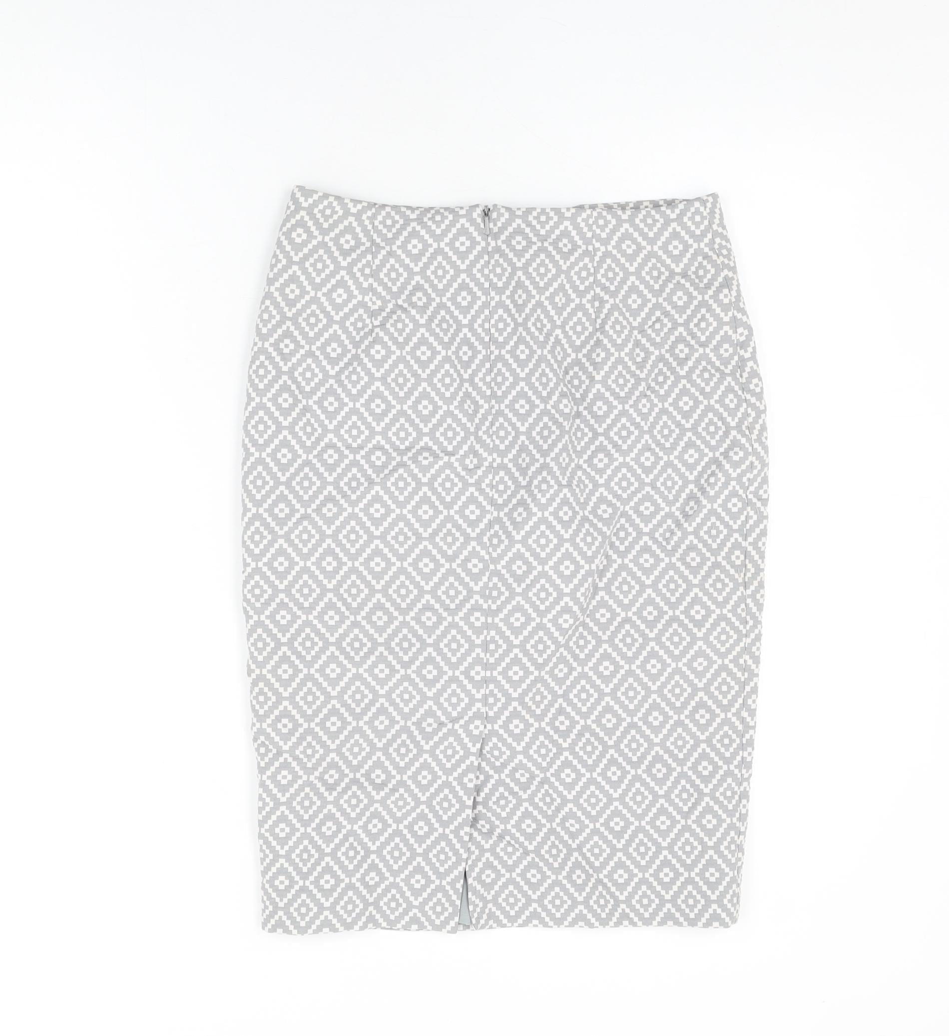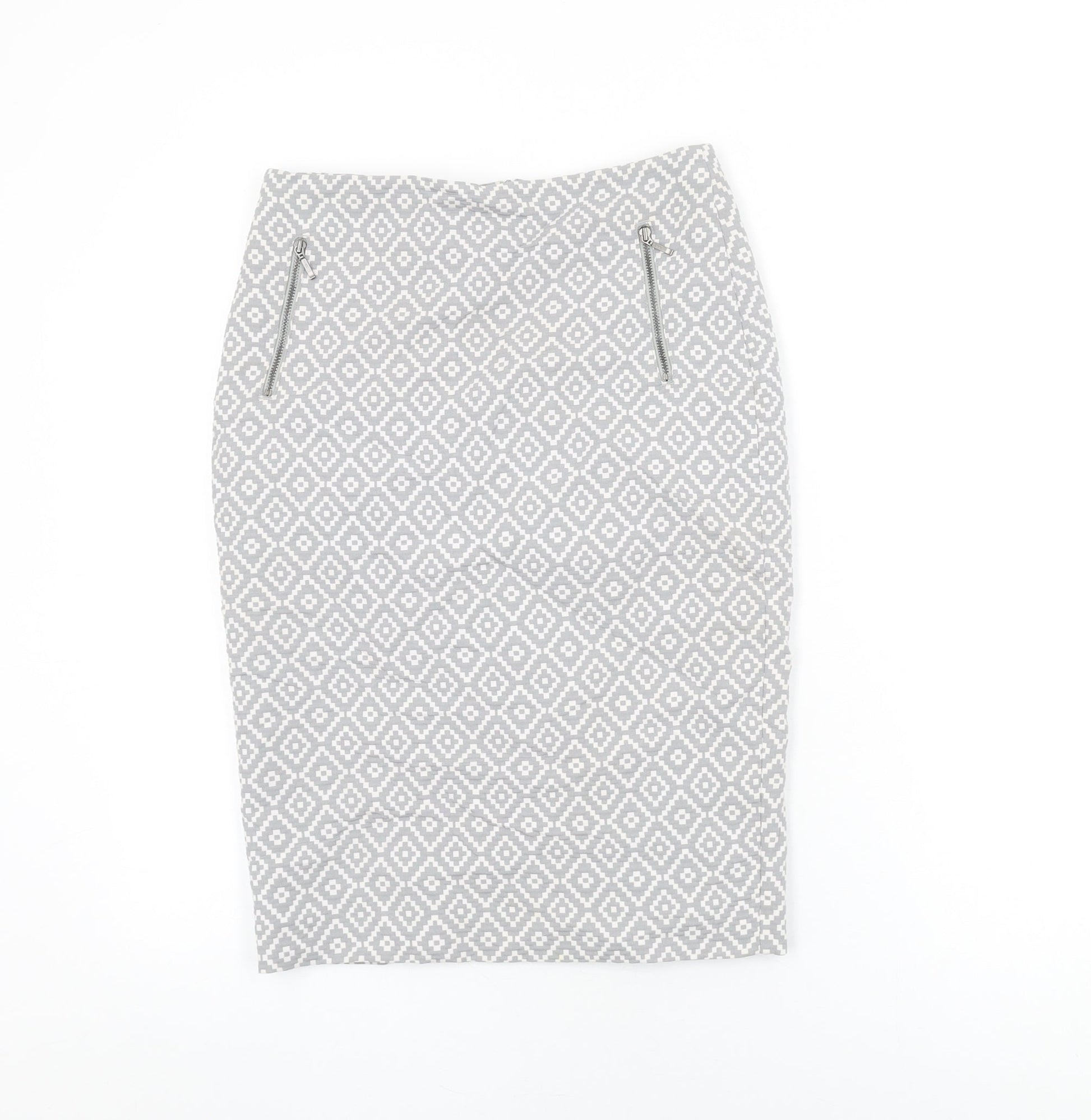 Marks and Spencer Womens Grey Geometric Polyester Straight & Pencil Skirt Size 8 Zip