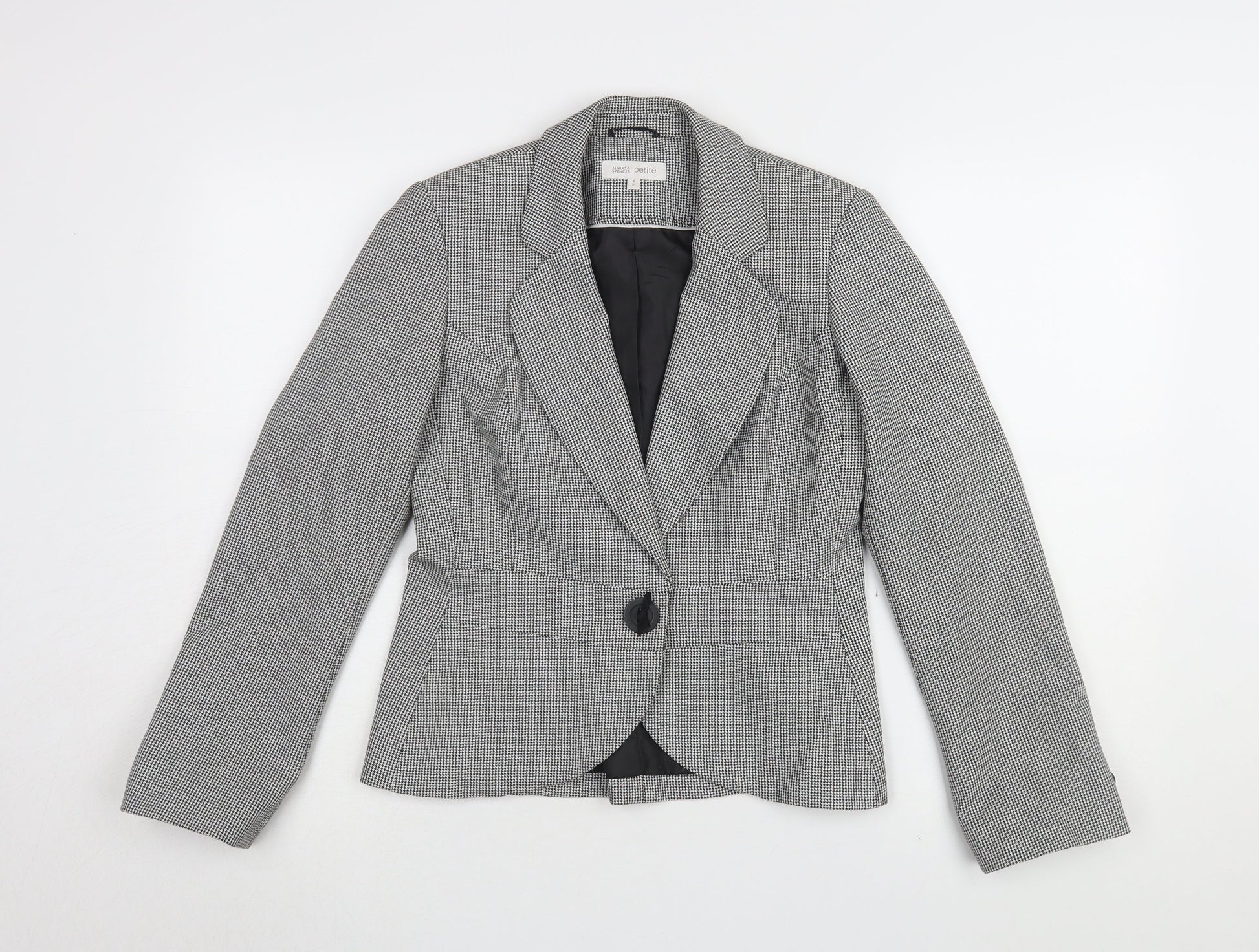 Marks and Spencer Women's Grey Houndstooth Blazer - Size 8