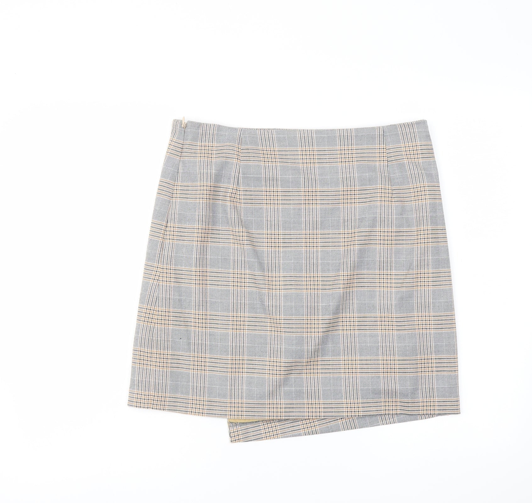 Marks and Spencer Womens Grey Plaid Polyester A-Line Skirt Size 10 Zip