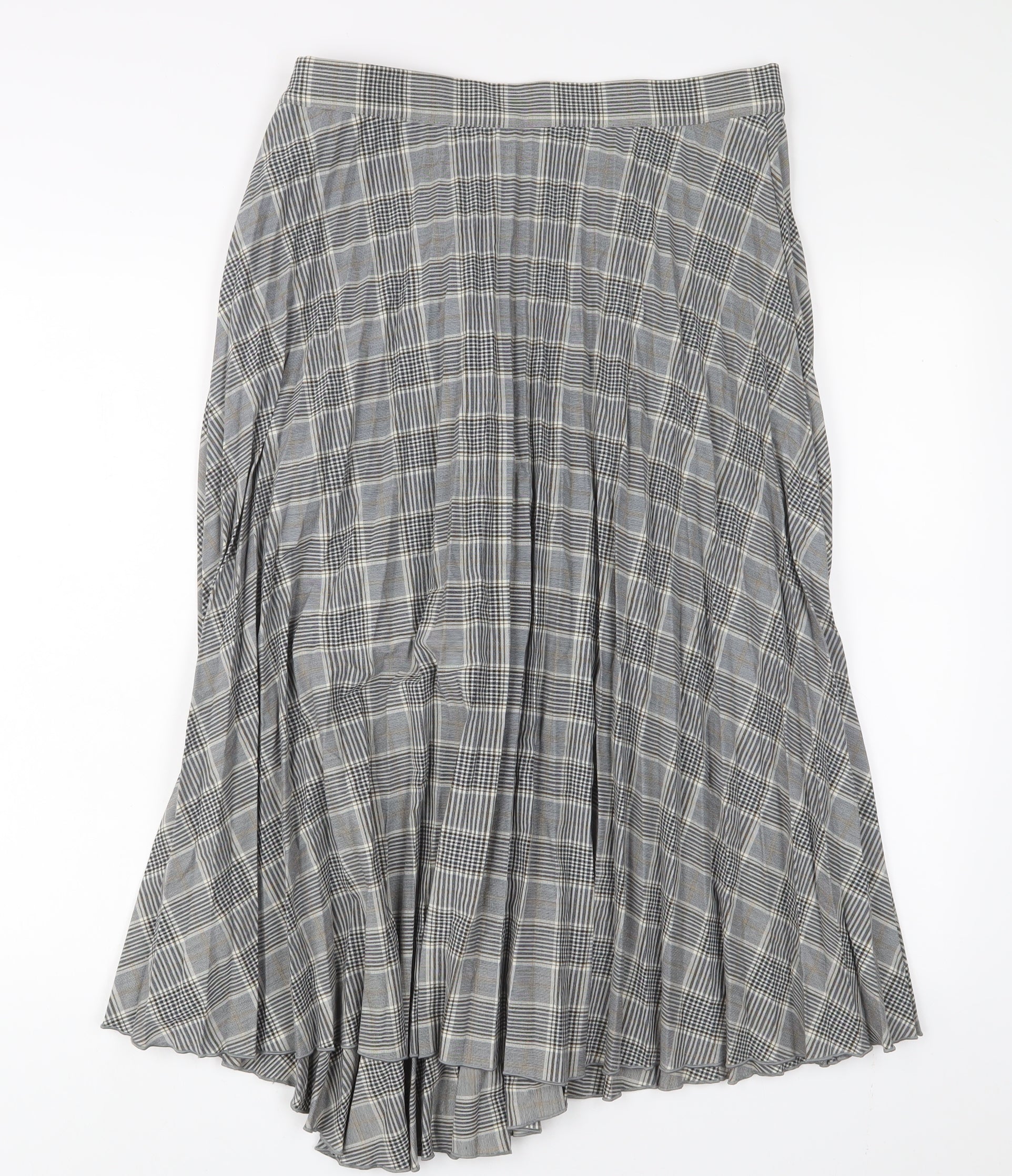 Marks and Spencer Womens Grey Plaid Polyester A-Line Skirt Size 12 Zip - Pleated