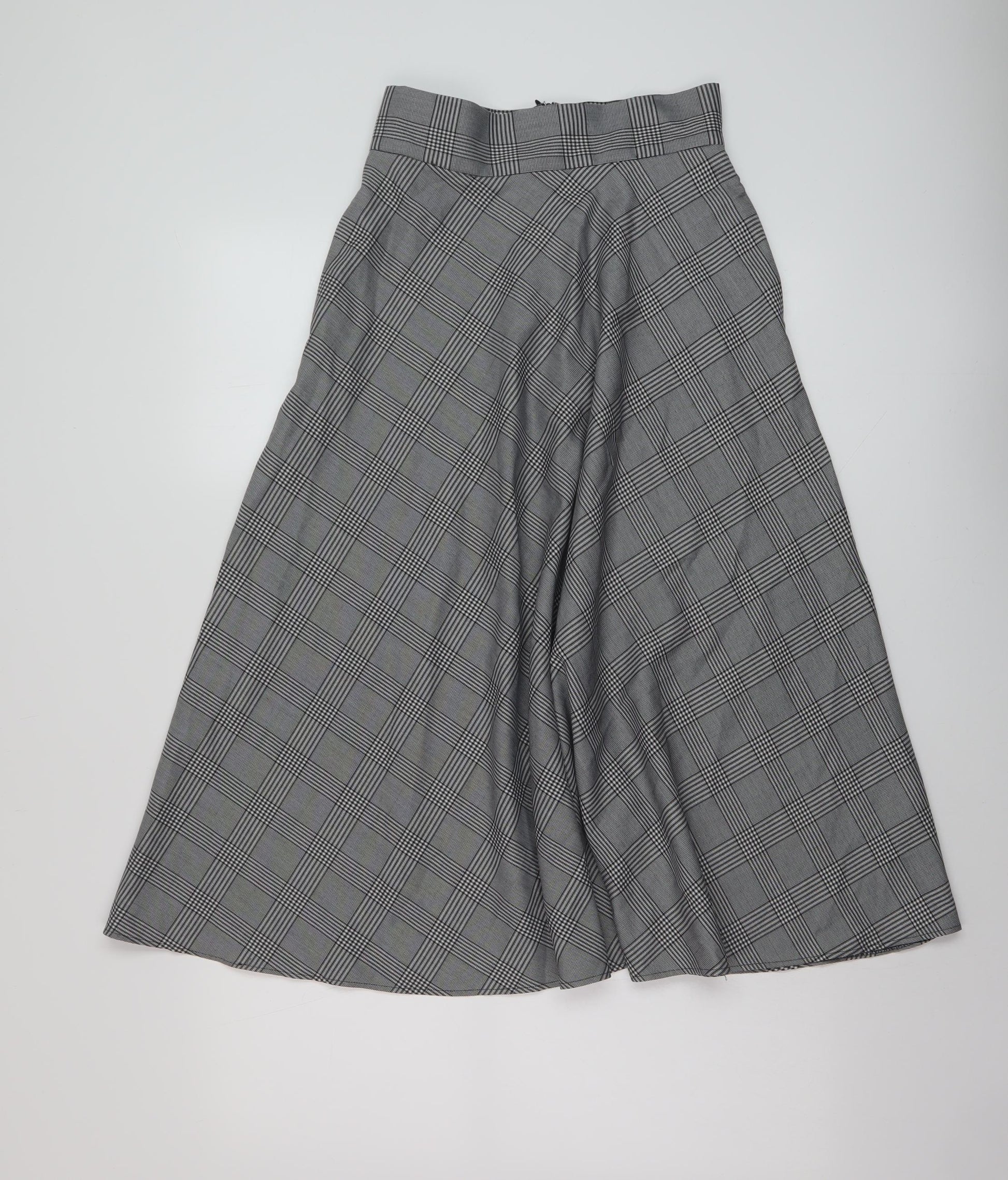Marks and Spencer Womens Grey Plaid Polyester A-Line Skirt Size 6 Zip