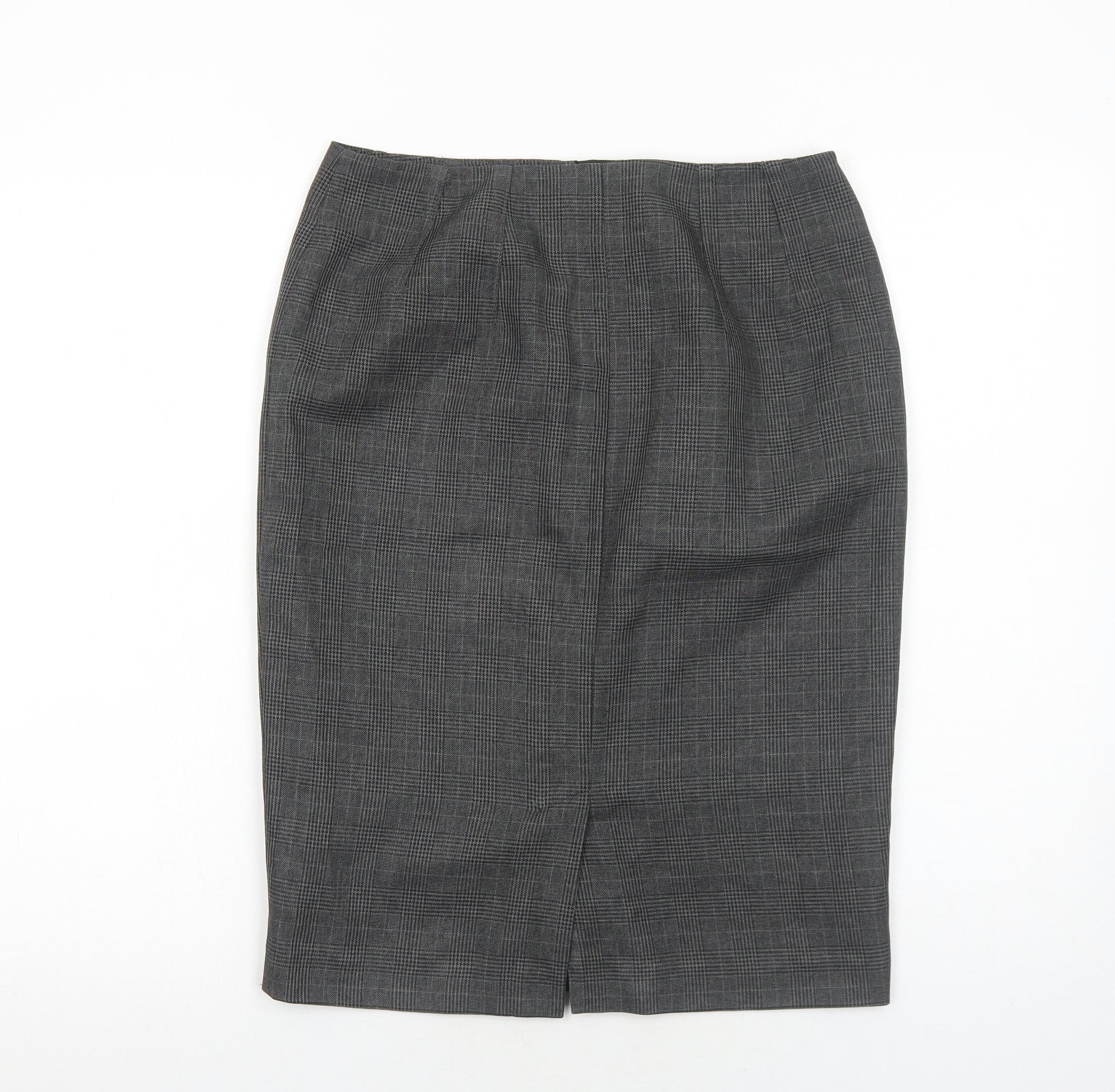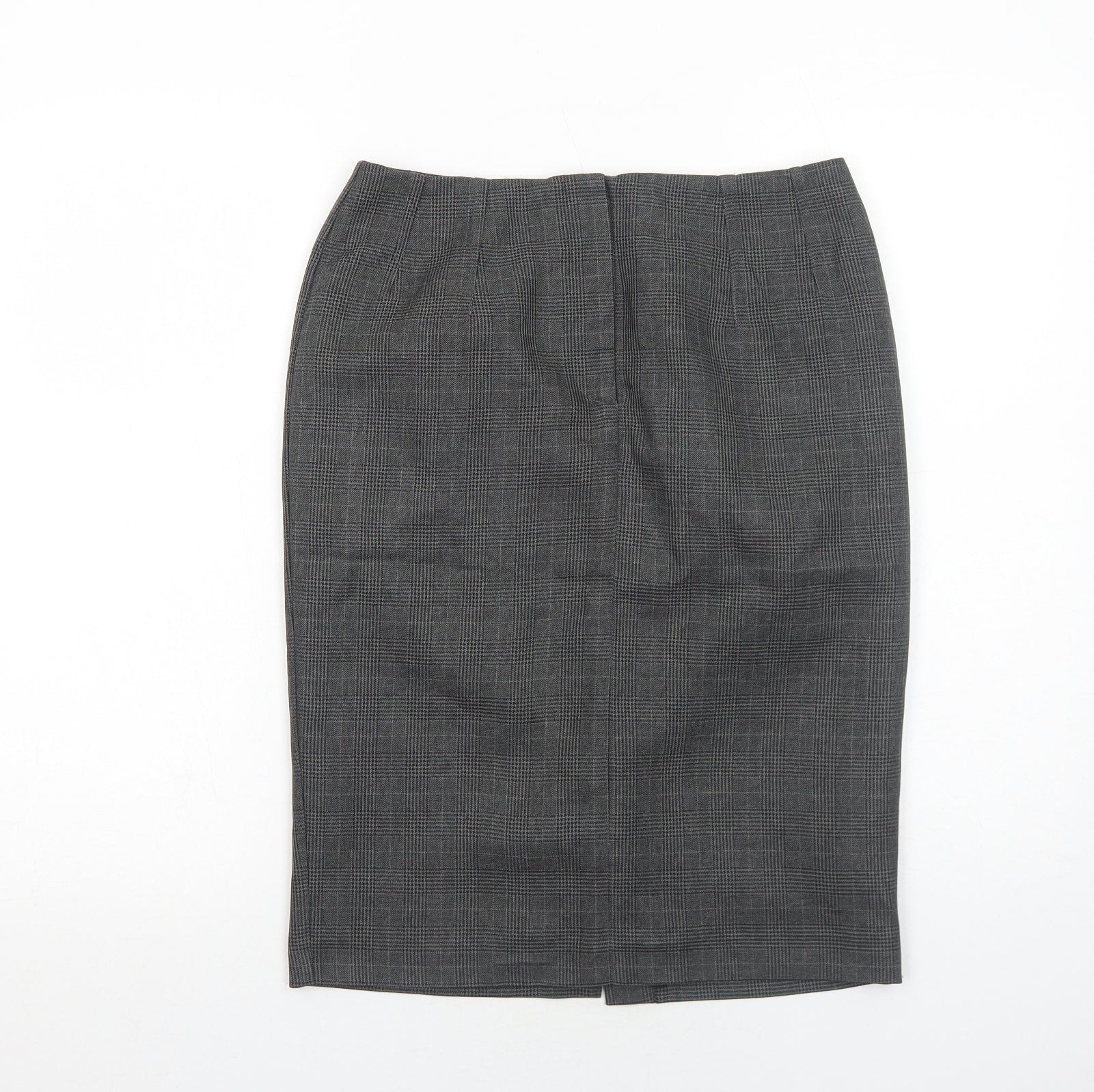 Marks and Spencer Womens Grey Plaid Polyester Straight & Pencil Skirt Size 10 Zip