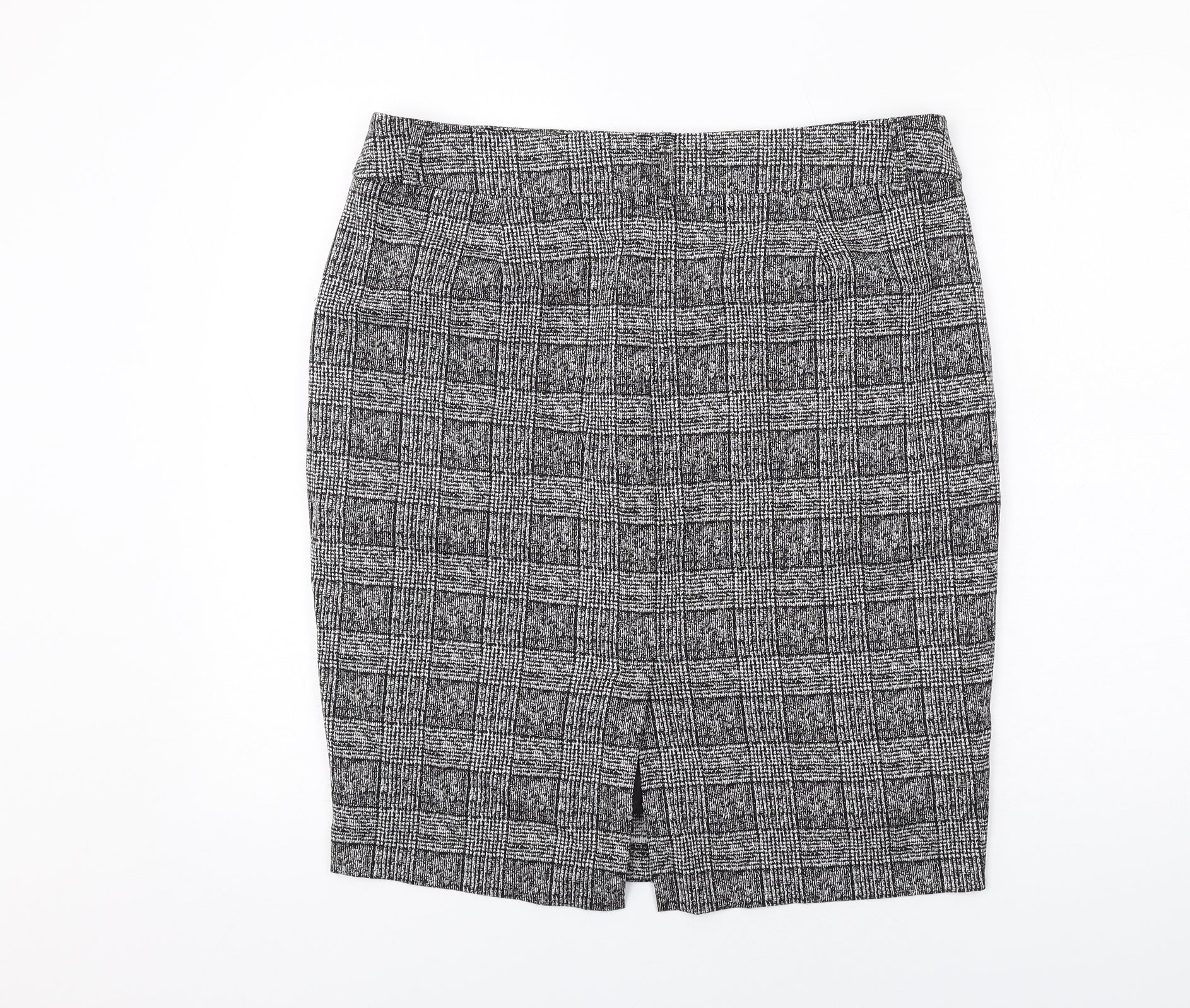 Marks and Spencer Womens Grey Plaid Polyester Straight & Pencil Skirt Size 16 Zip