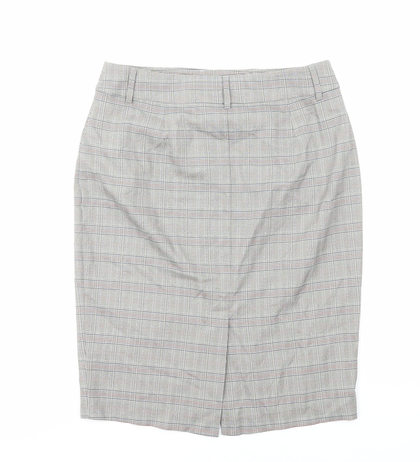 Marks and Spencer Womens Grey Plaid Viscose Straight & Pencil Skirt Size 12 Zip