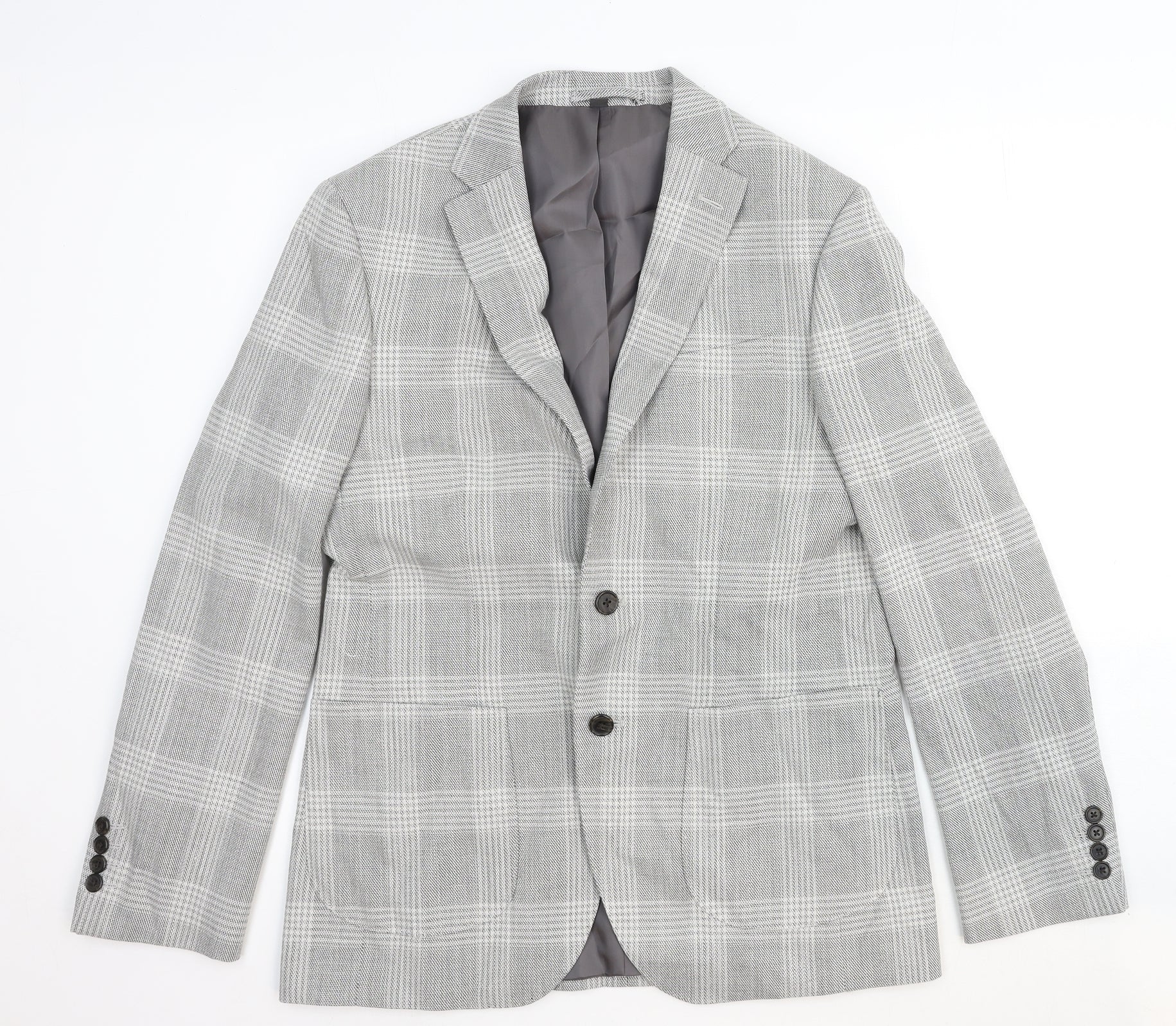 Marks and Spencer Womens Grey Plaid Wool Jacket Blazer Size M