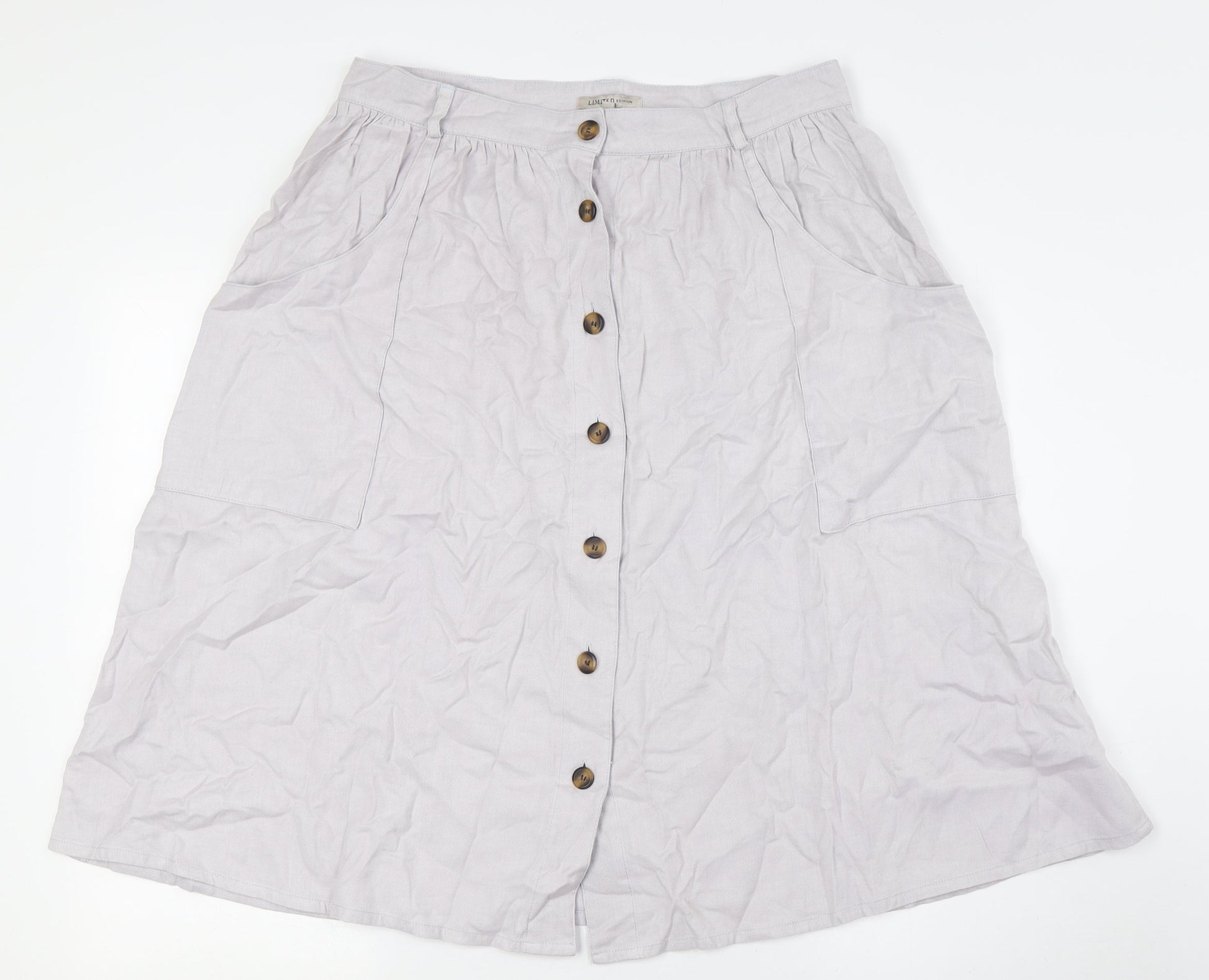 Marks and Spencer Womens Grey Polyester A-Line Skirt Size 14 Button