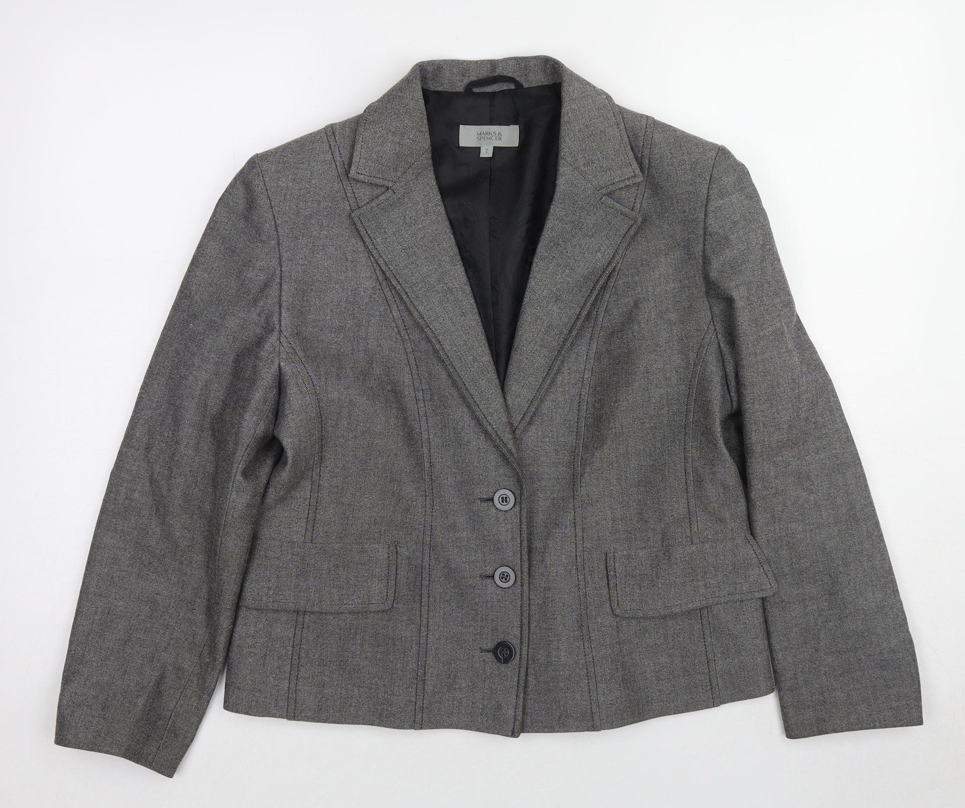 Marks and Spencer Womens Grey Polyester Jacket Blazer Size 14