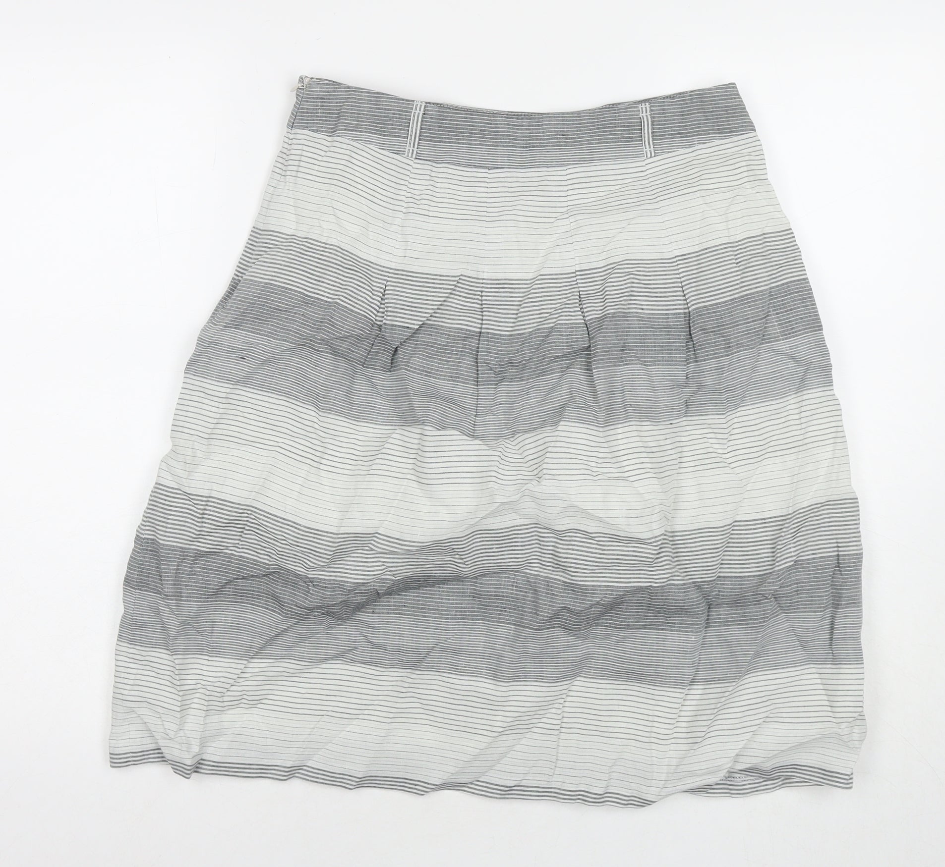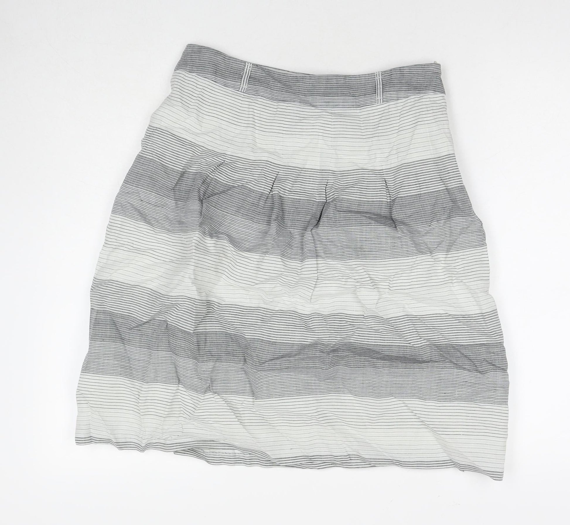 Marks and Spencer Womens Grey Striped Ramie A-Line Skirt Size 10 Zip