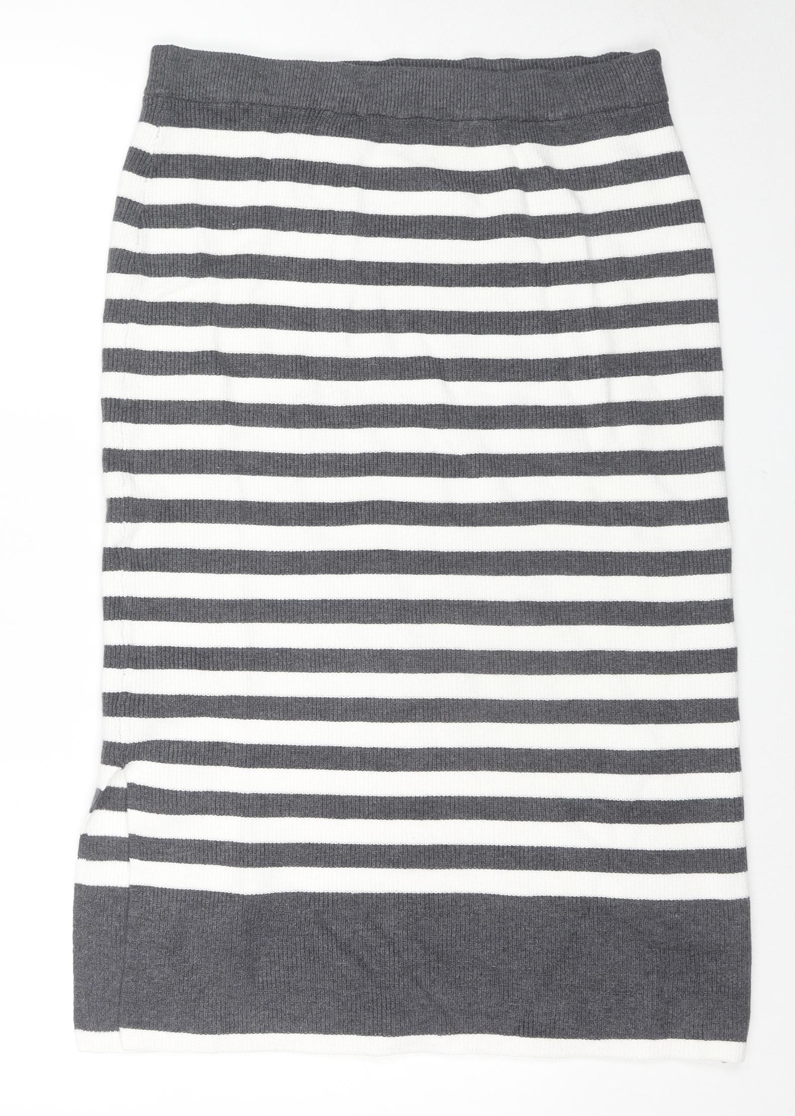 Marks and Spencer Womens Grey Striped Viscose A-Line Skirt Size L