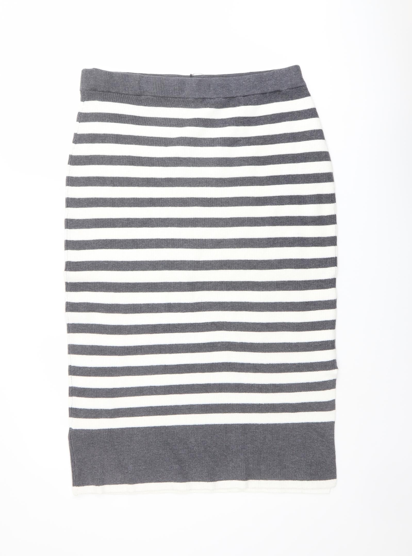 Marks and Spencer Womens Grey Striped Viscose Straight & Pencil Skirt Size L