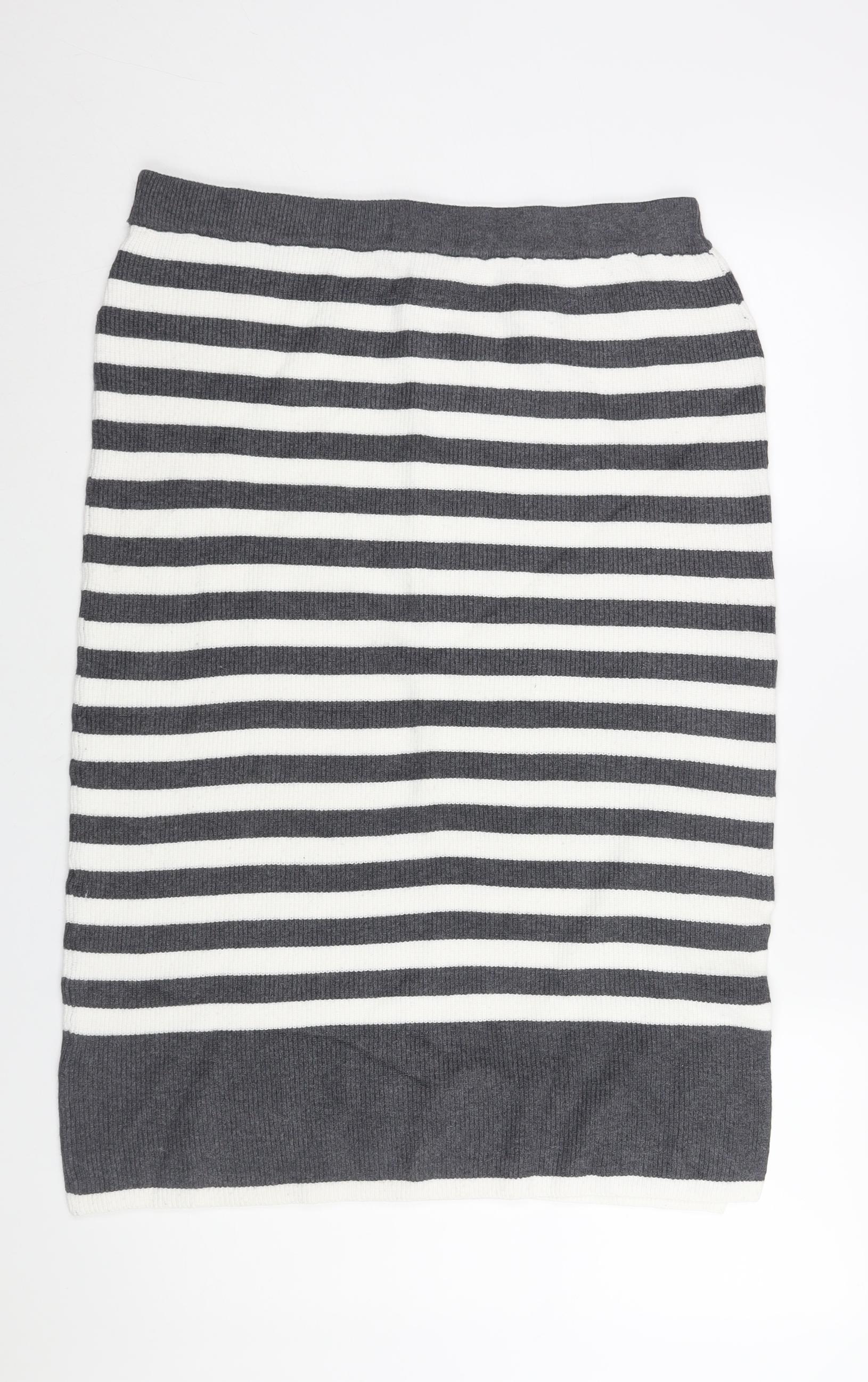 Marks and Spencer Womens Grey Striped Viscose Straight & Pencil Skirt Size L - Side Slit