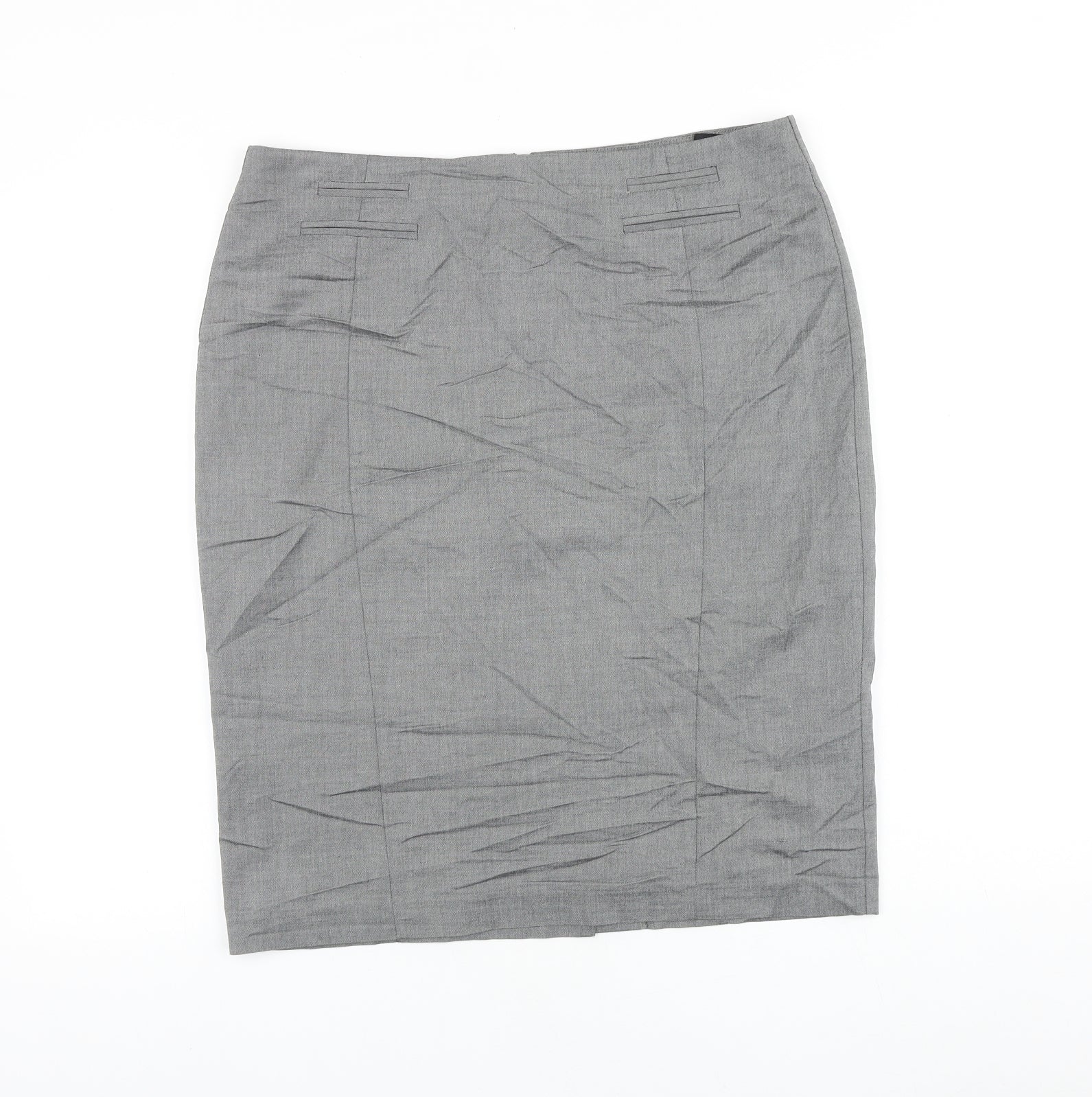 Marks and Spencer Womens Grey Viscose Straight & Pencil Skirt Size 14 Zip