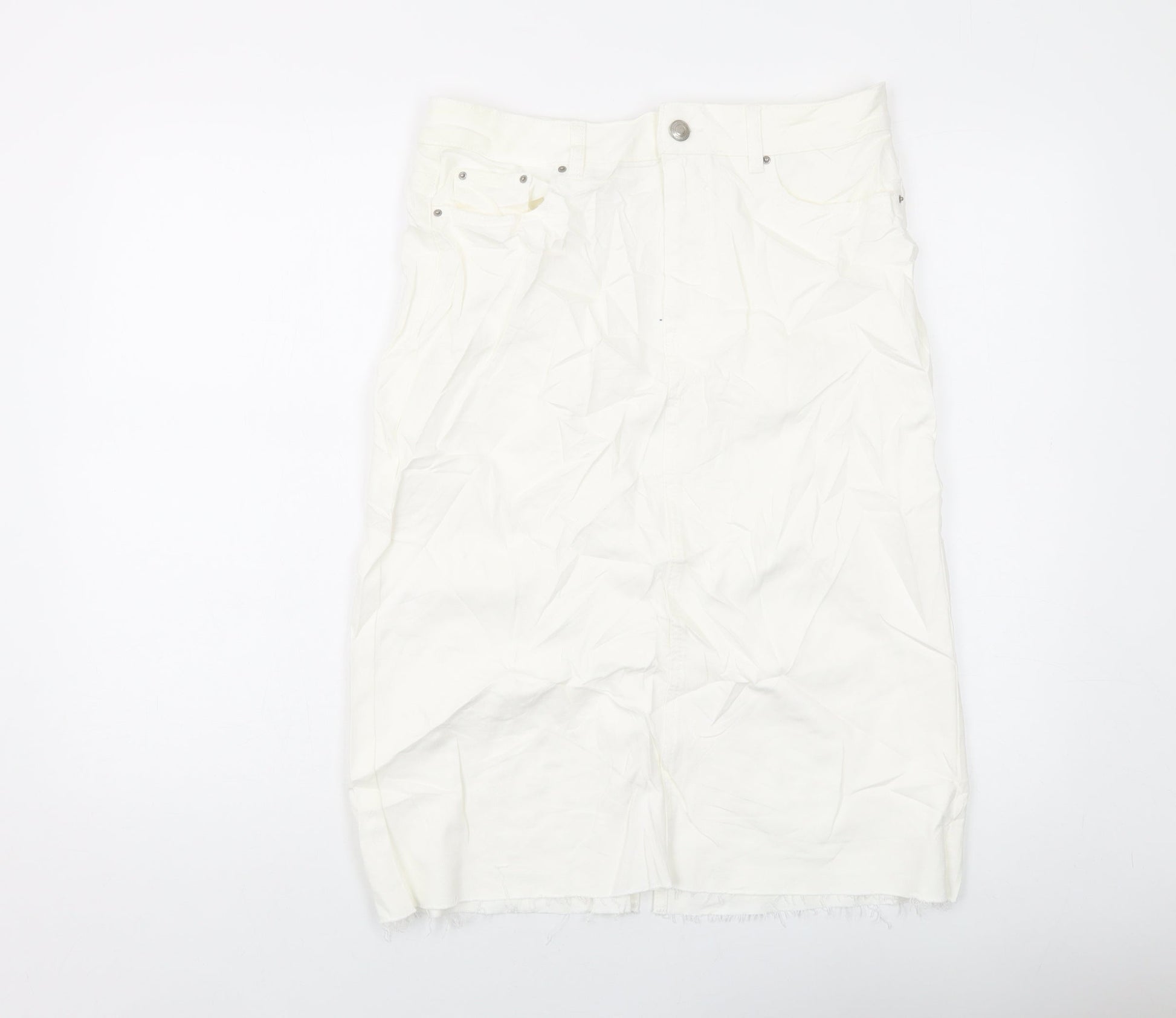 Marks and Spencer Womens Ivory Cotton A-Line Skirt Size 12 Button
