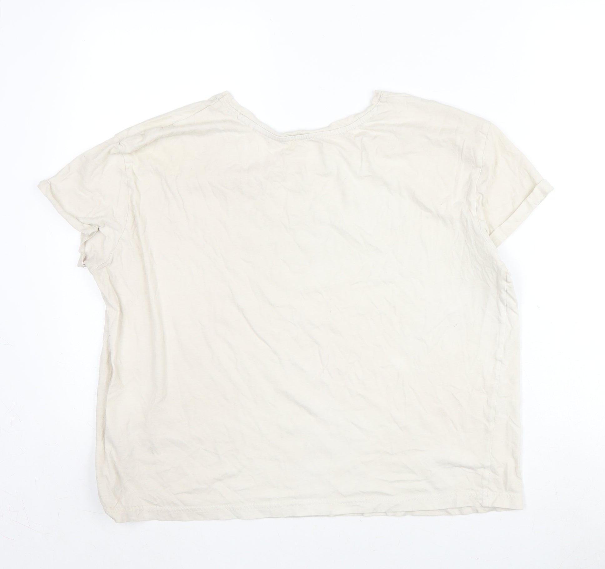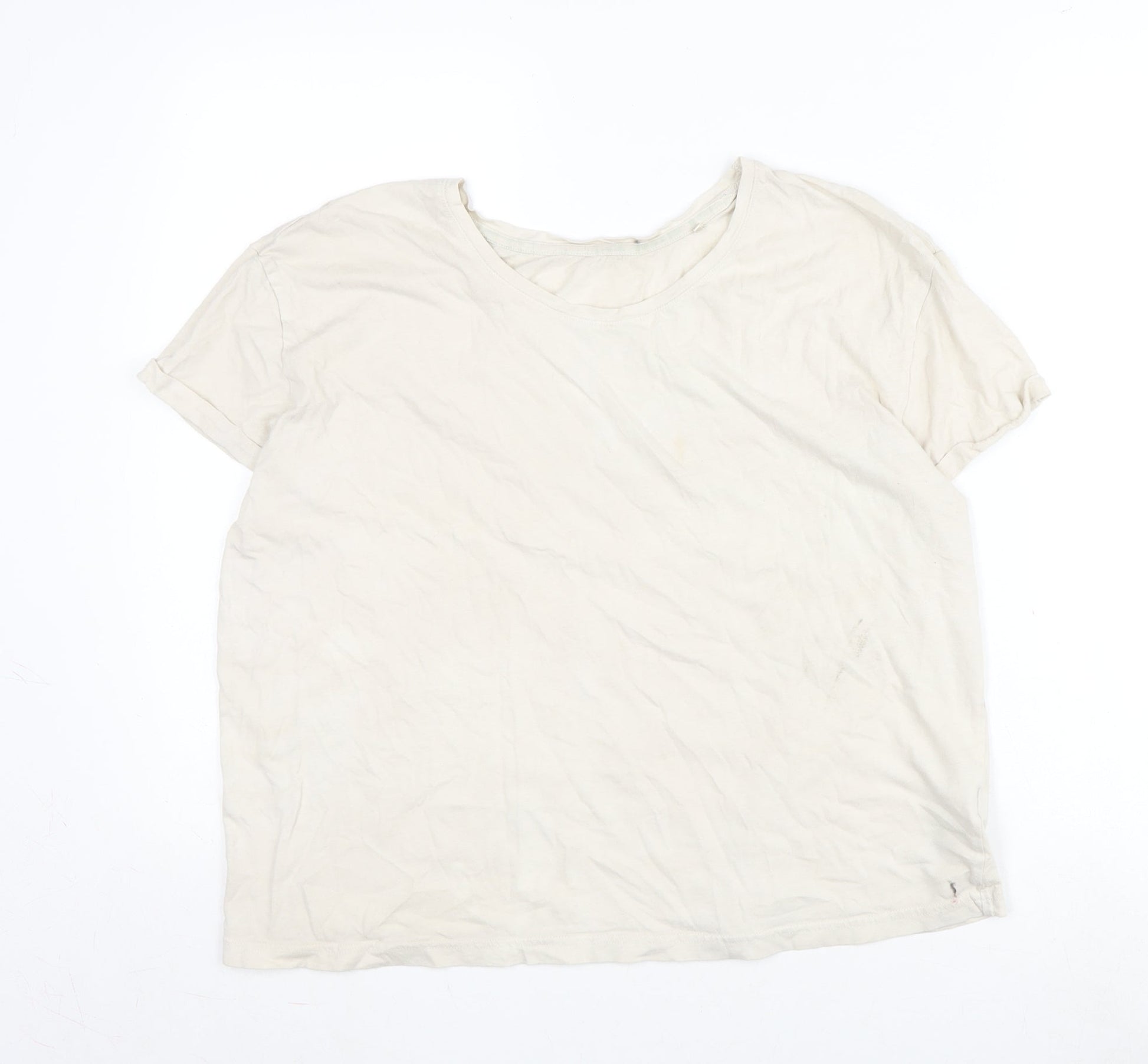 Marks and Spencer Womens Ivory Cotton Basic T-Shirt Size L Crew Neck