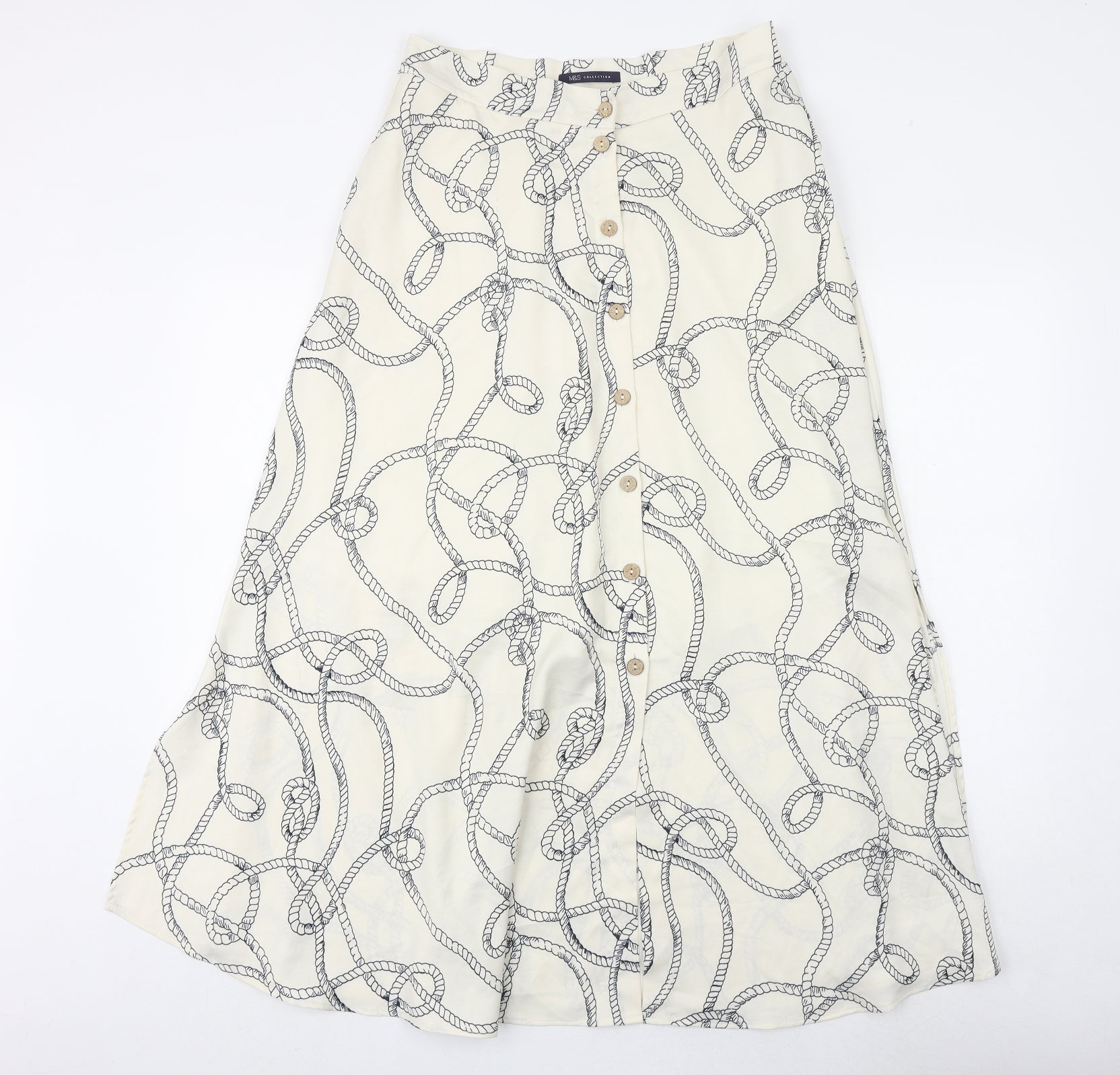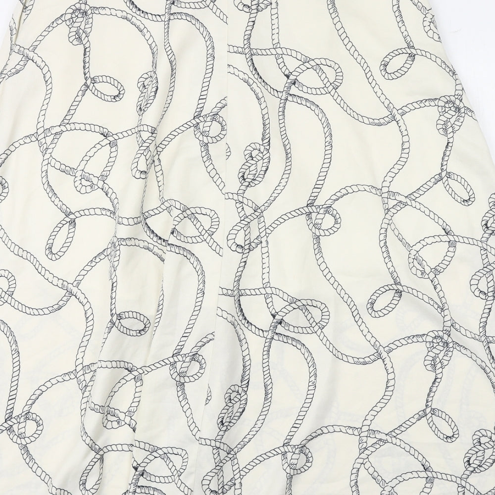 Marks and Spencer Womens Ivory Geometric Polyester Peasant Skirt Size 8 Button