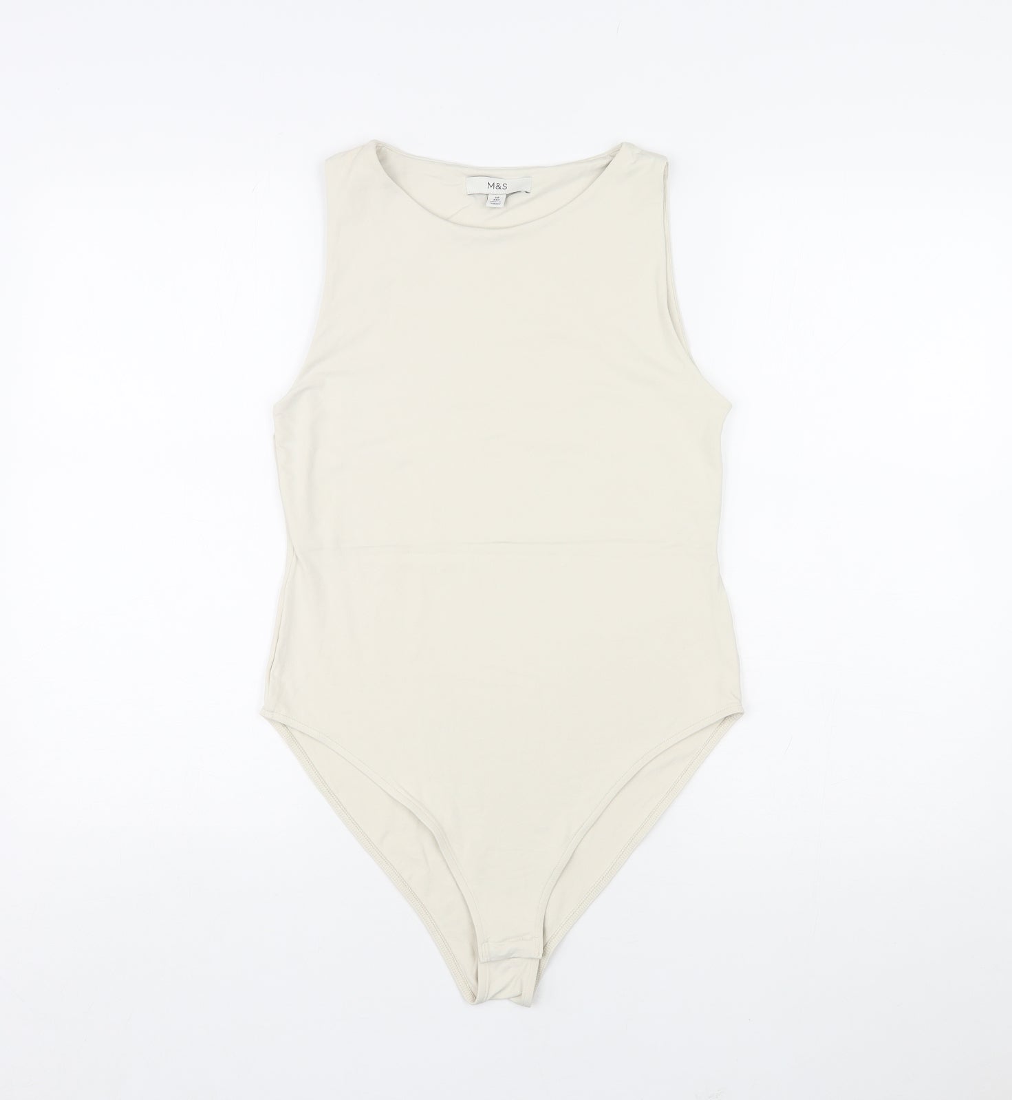 Marks and Spencer Womens Ivory Polyamide Bodysuit One-Piece Size 10 Snap