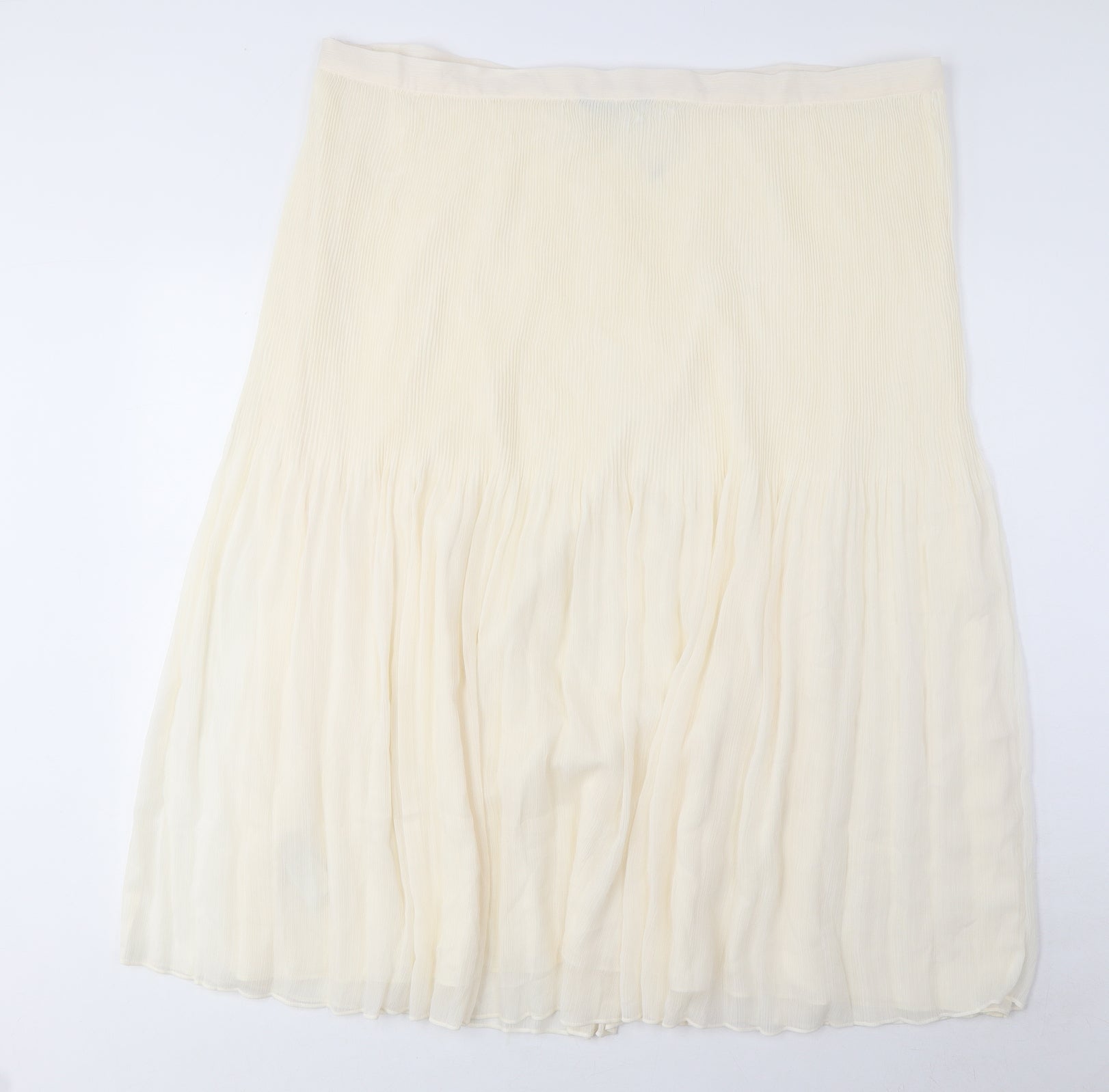 Marks and Spencer Womens Ivory Polyester A-Line Skirt Size 24 Zip - Pleated