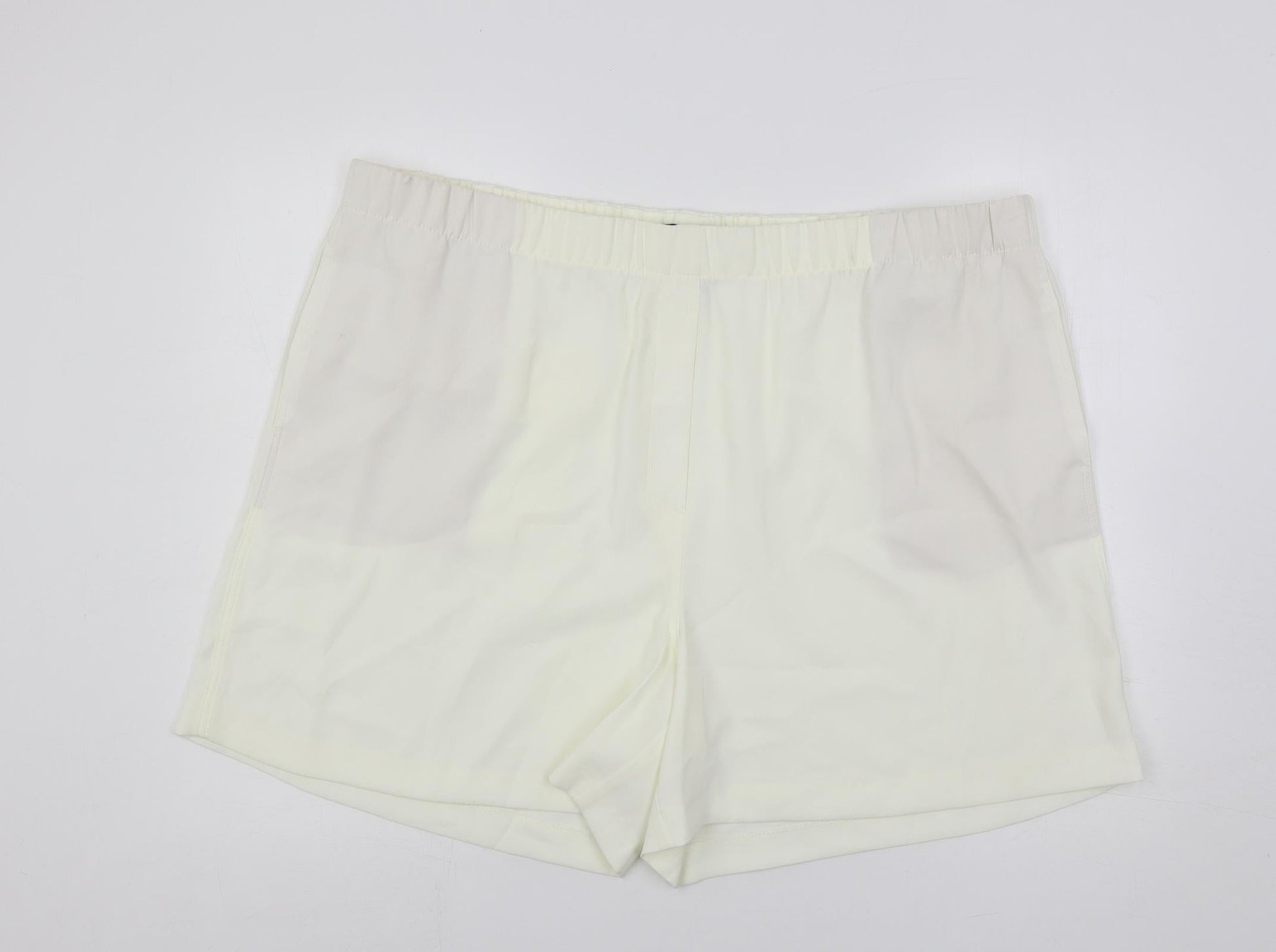 Marks and Spencer Womens Ivory Polyester Basic Shorts Size 24 L5 in Regular - Elastic Waist
