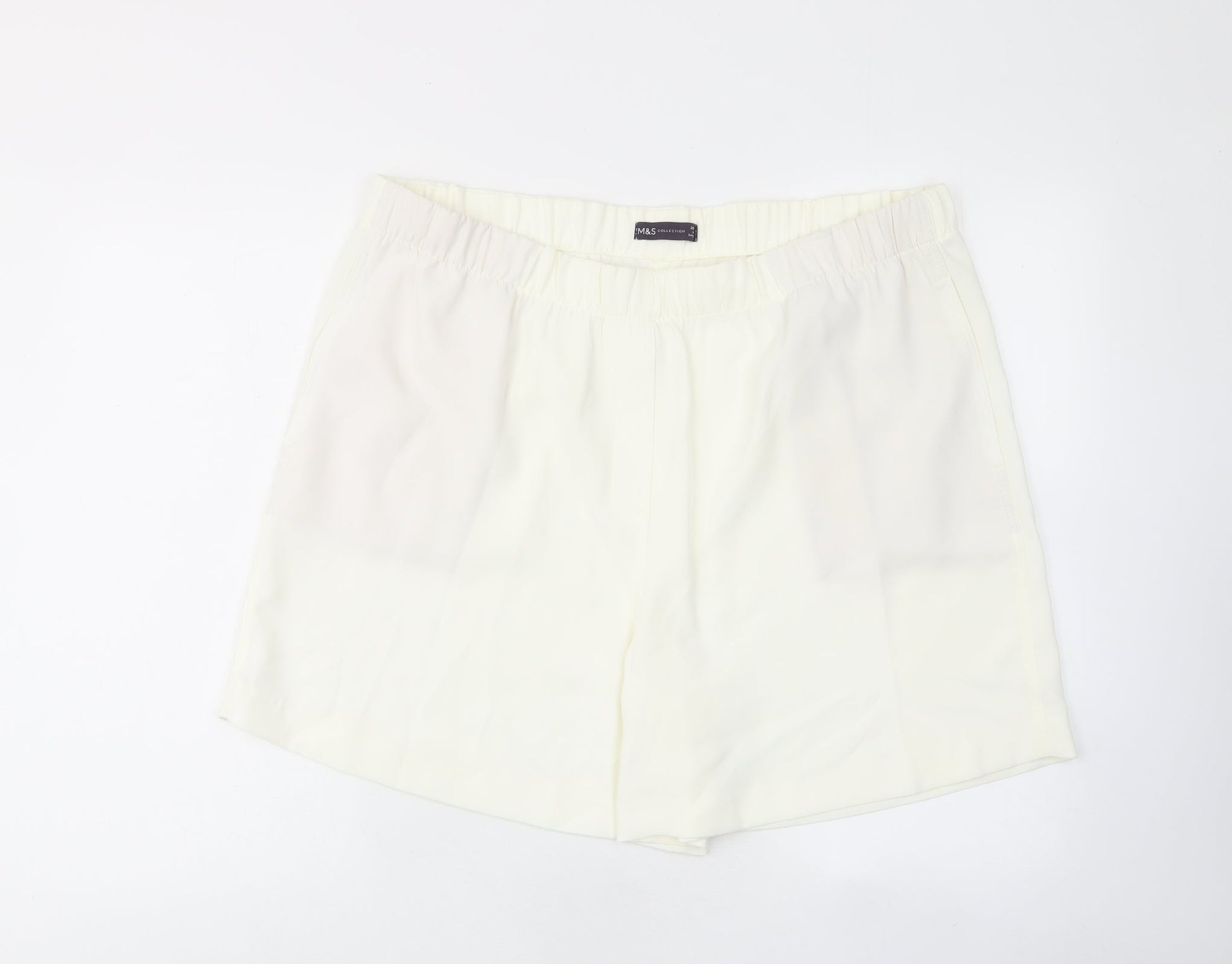 Marks and Spencer Womens Ivory Polyester Bermuda Shorts Size 20 L7 in Regular Pull On - Pockets, Elastic waist