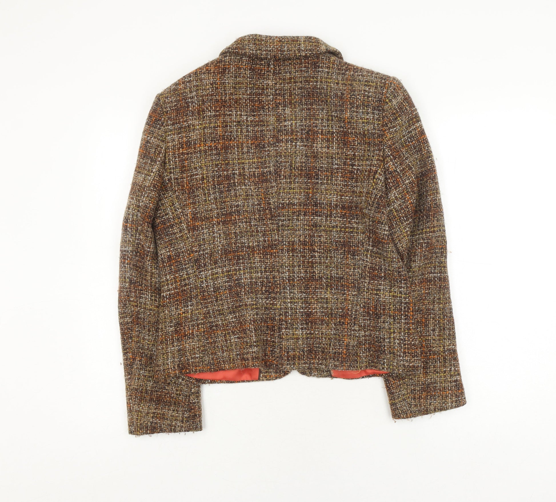 - Keywords: Blazer Womenswear Marks and Spencer Multicoloured Bouclé Wool blend Notch lapel Check pattern Casual wear Tailored