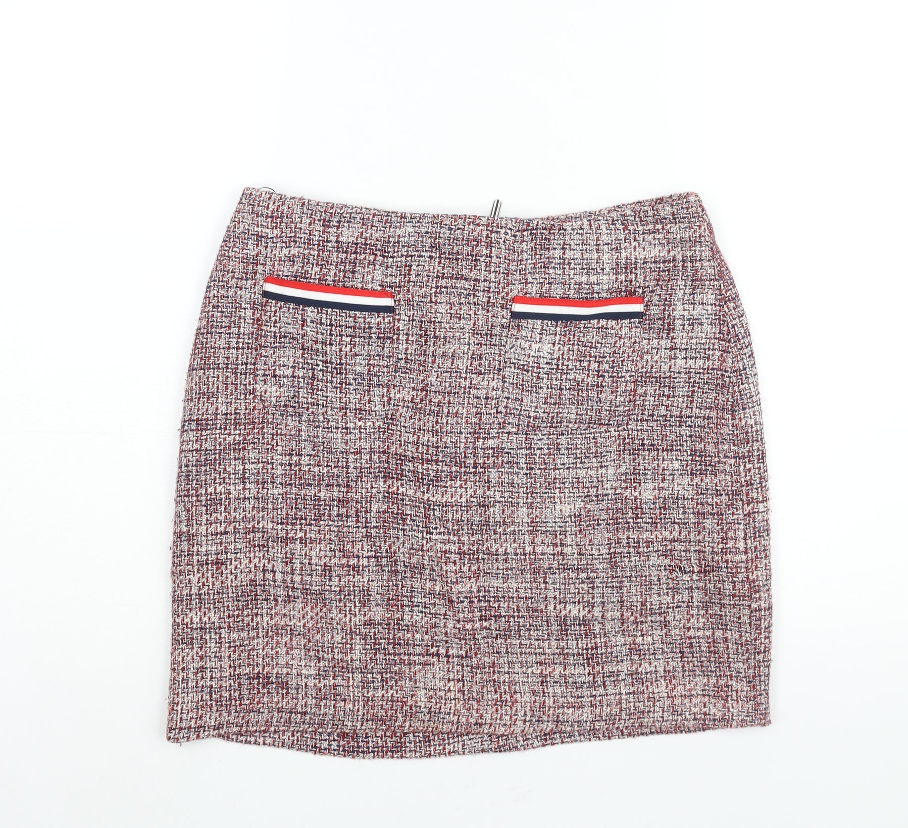Marks and Spencer Womens Multicoloured Cotton Straight & Pencil Skirt Size 10 Zip - Pocket Detail