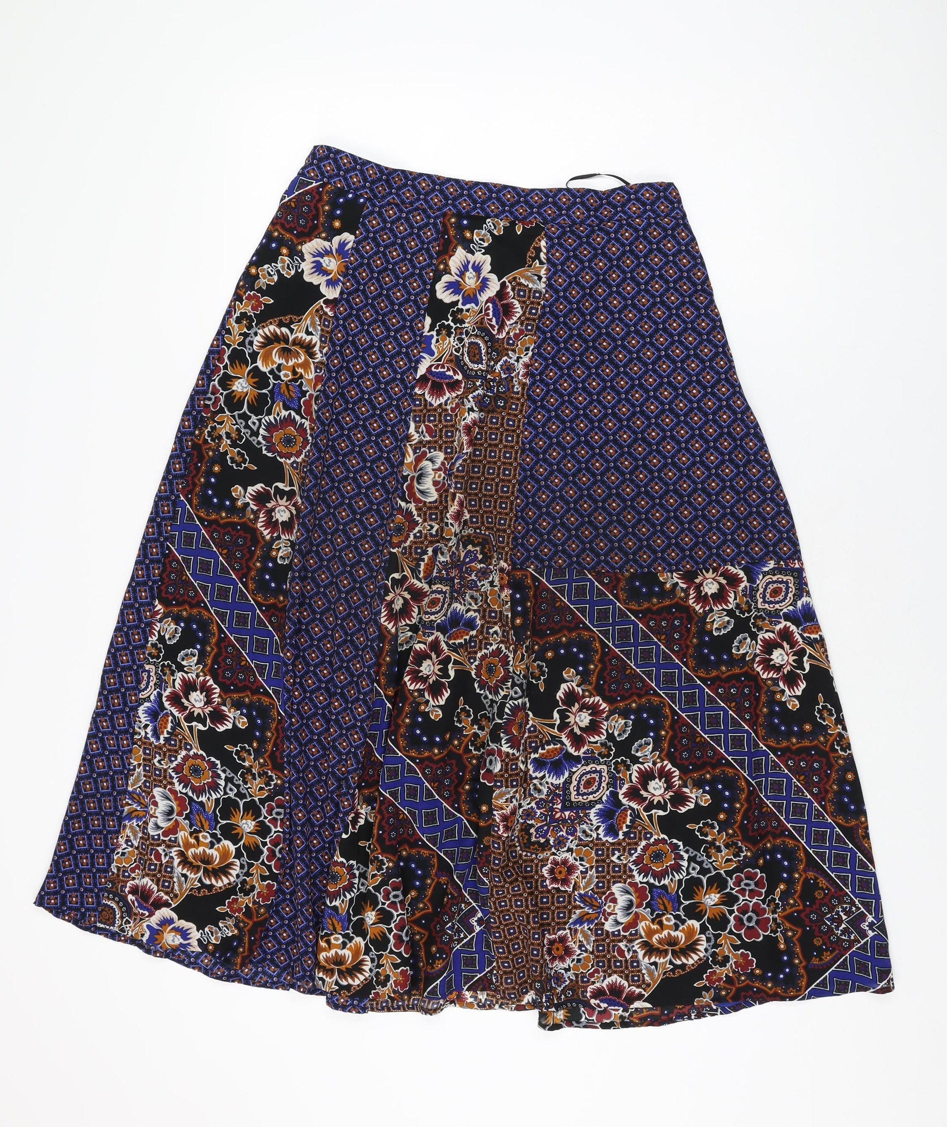 Marks and Spencer Womens Multicoloured Geometric Polyester Swing Skirt Size 12 Zip