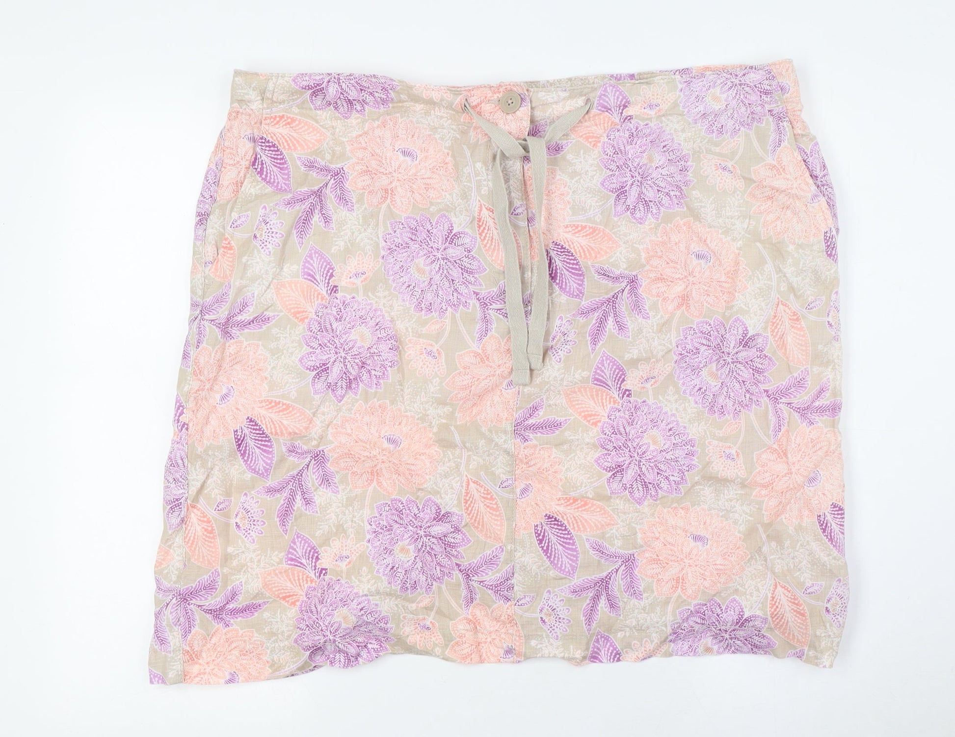Marks and Spencer Womens Multicoloured Linen A-Line Skirt Size 20 Zip