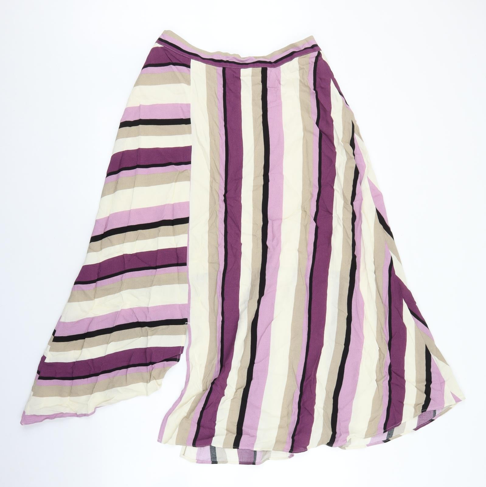 Marks and Spencer Womens Multicoloured Striped Polyester A-Line Skirt Size 14 Zip