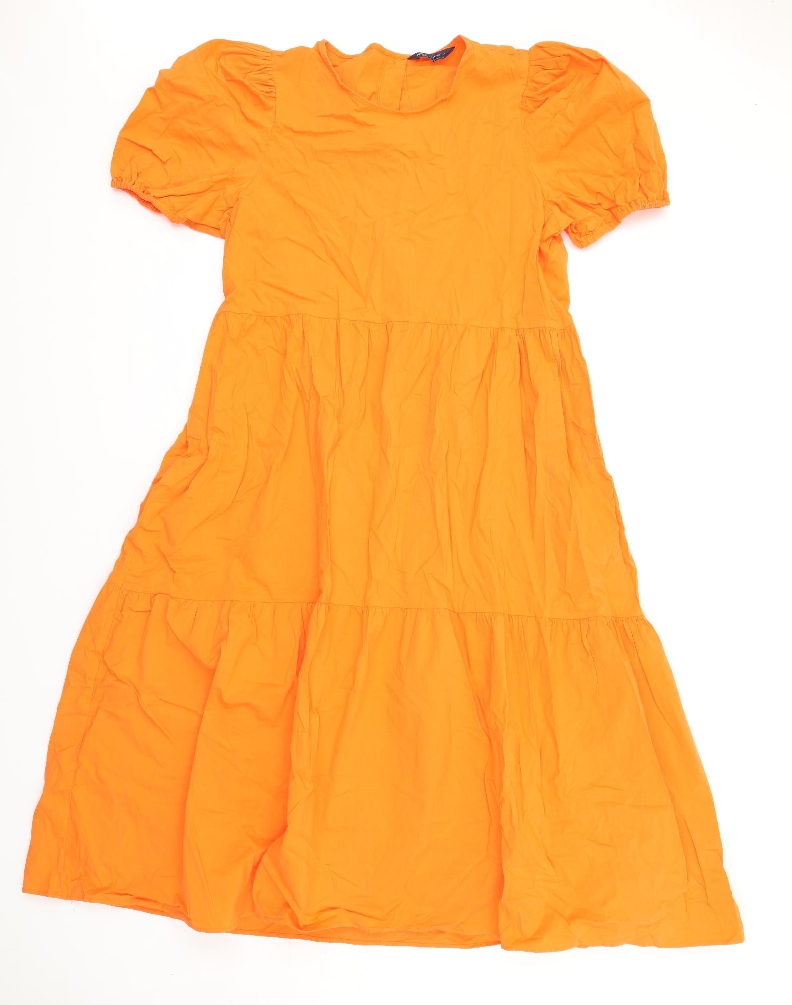 Marks and Spencer Womens Orange Cotton Ball Gown Size 14 Round Neck Button