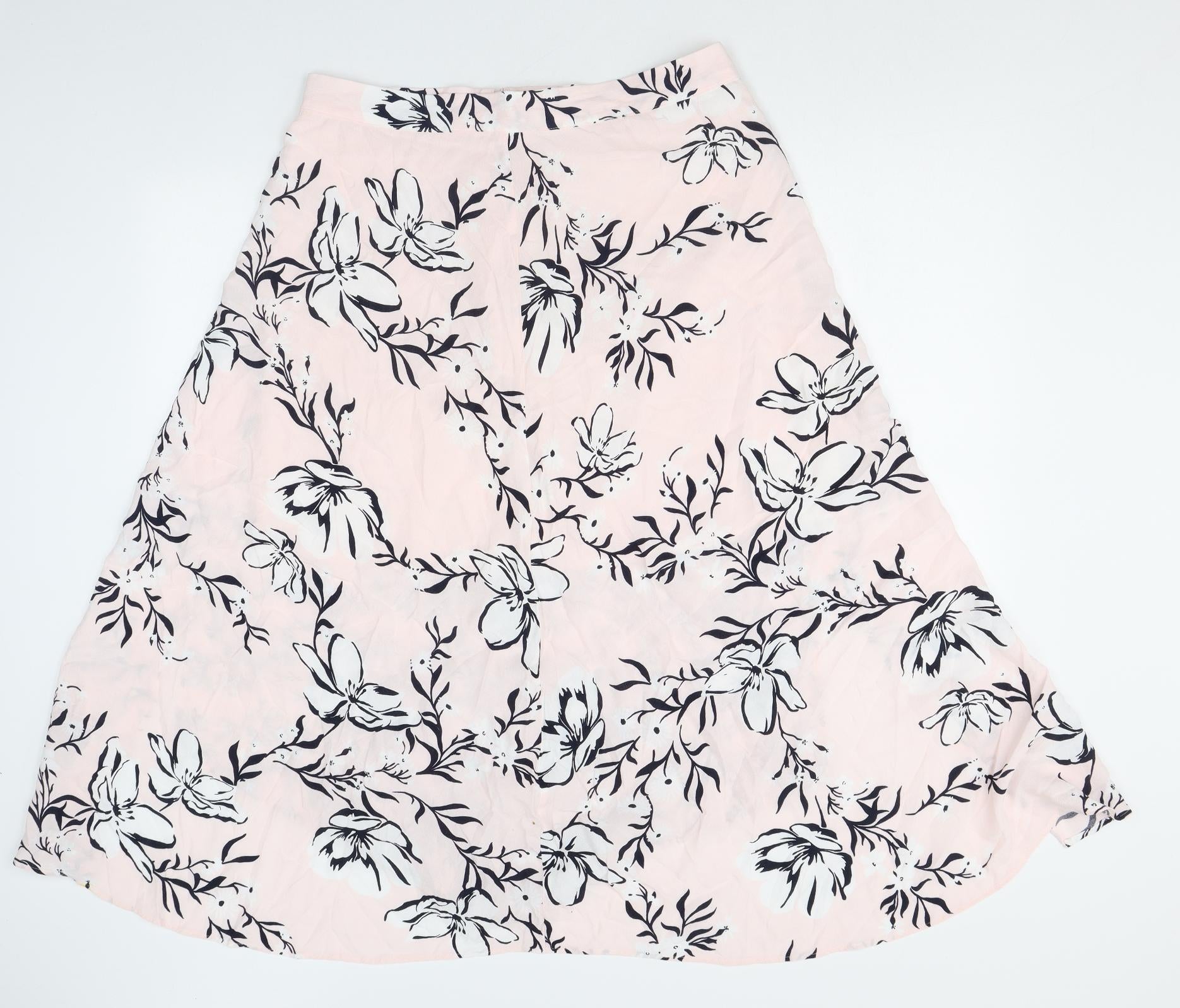 Marks and Spencer Womens Pink Floral Viscose A-Line Skirt Size 14 Zip