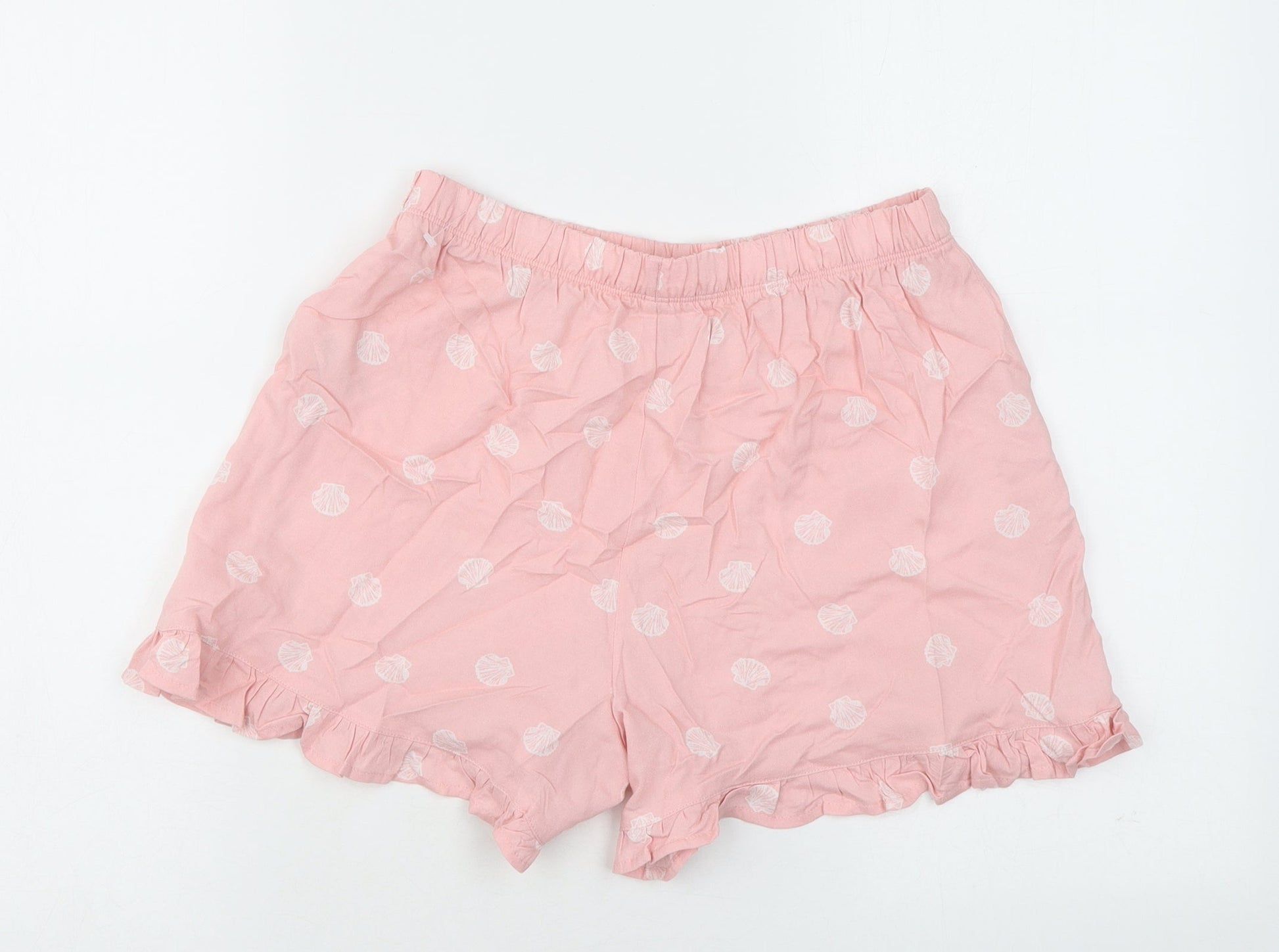 Marks and Spencer Womens Pink Geometric Viscose Basic Shorts Size 6 L3 in Regular Pull On - Seashells Print