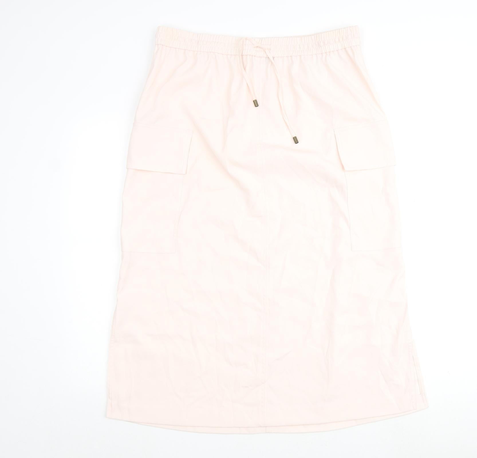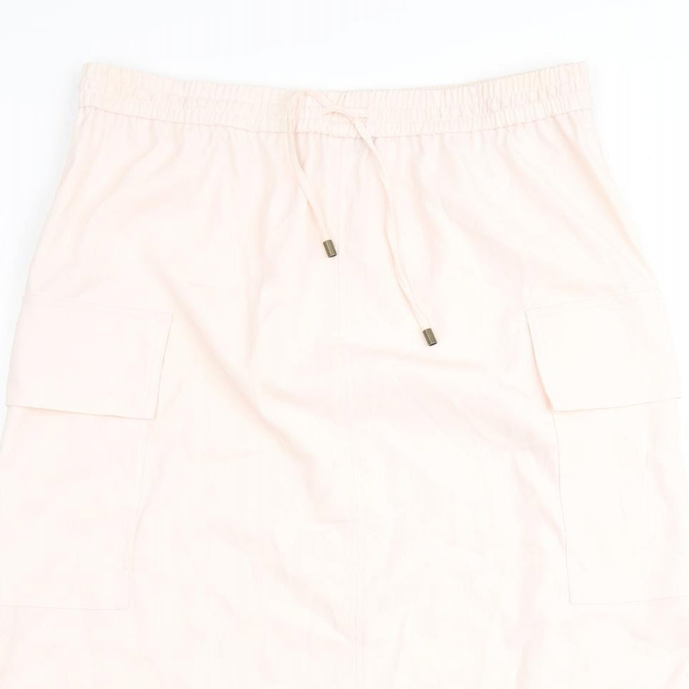 Marks and Spencer Womens Pink Polyester A-Line Skirt Size 16 Tie