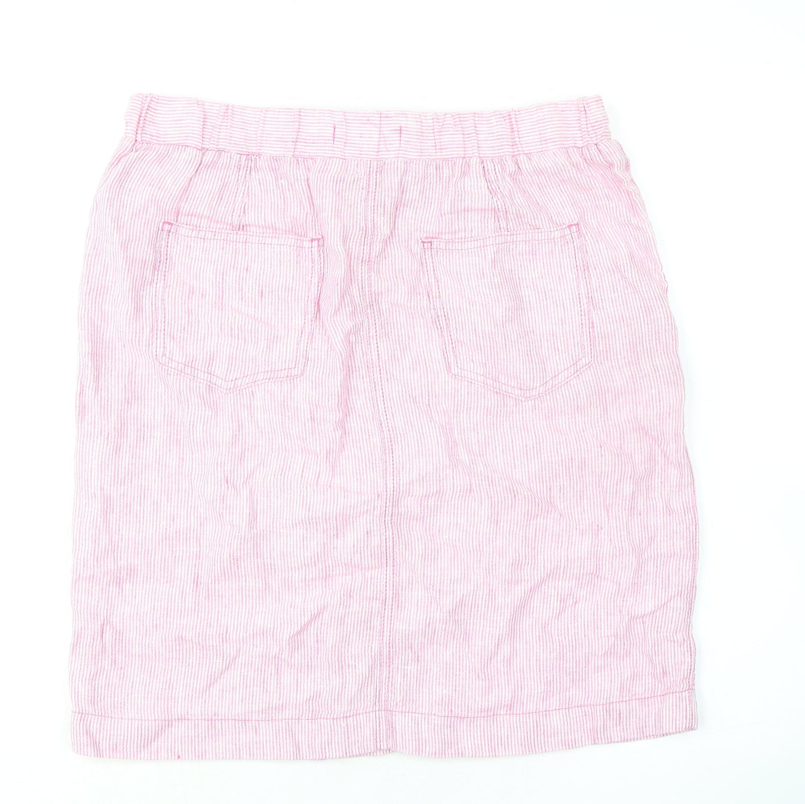 Marks and Spencer Womens Pink Striped Flax A-Line Skirt Size 12 Tie