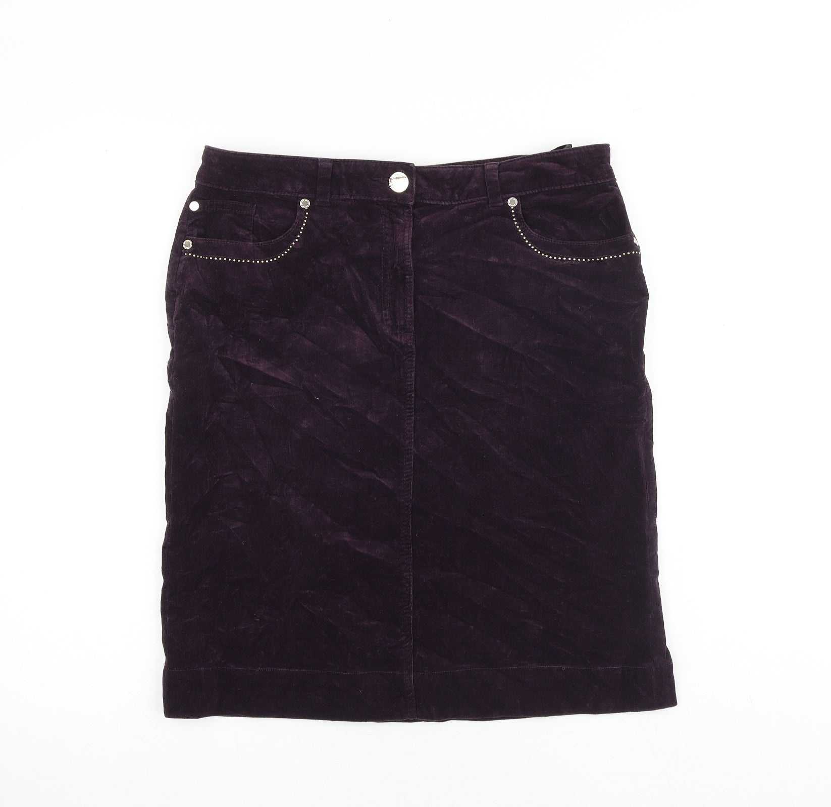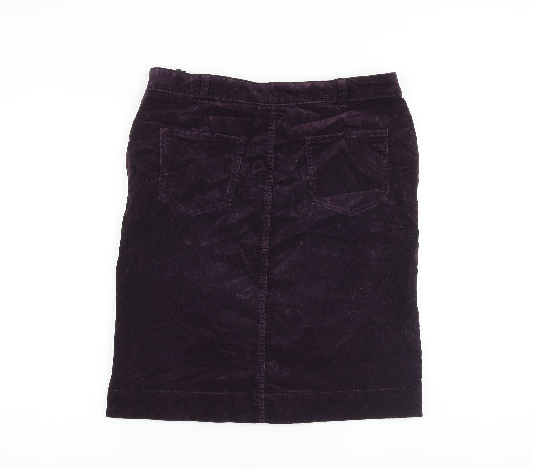 Marks and Spencer Womens Purple Cotton A-Line Skirt Size 12 Zip