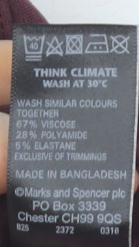 - Material Breakdown: 67% Viscose 28% Polyamide 5% Elastane
